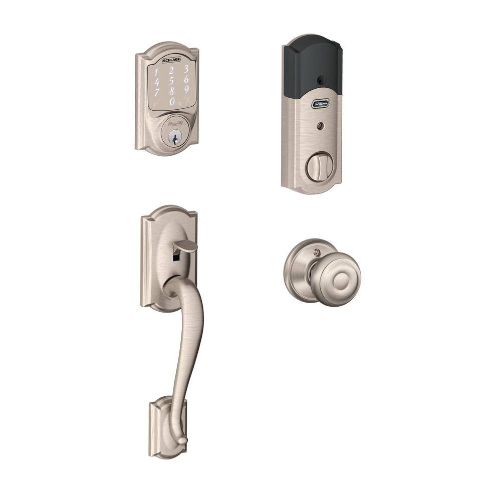 Schlage Camelot Satin Nickel Sense Smart Door Lock with Georgian Knob Handleset