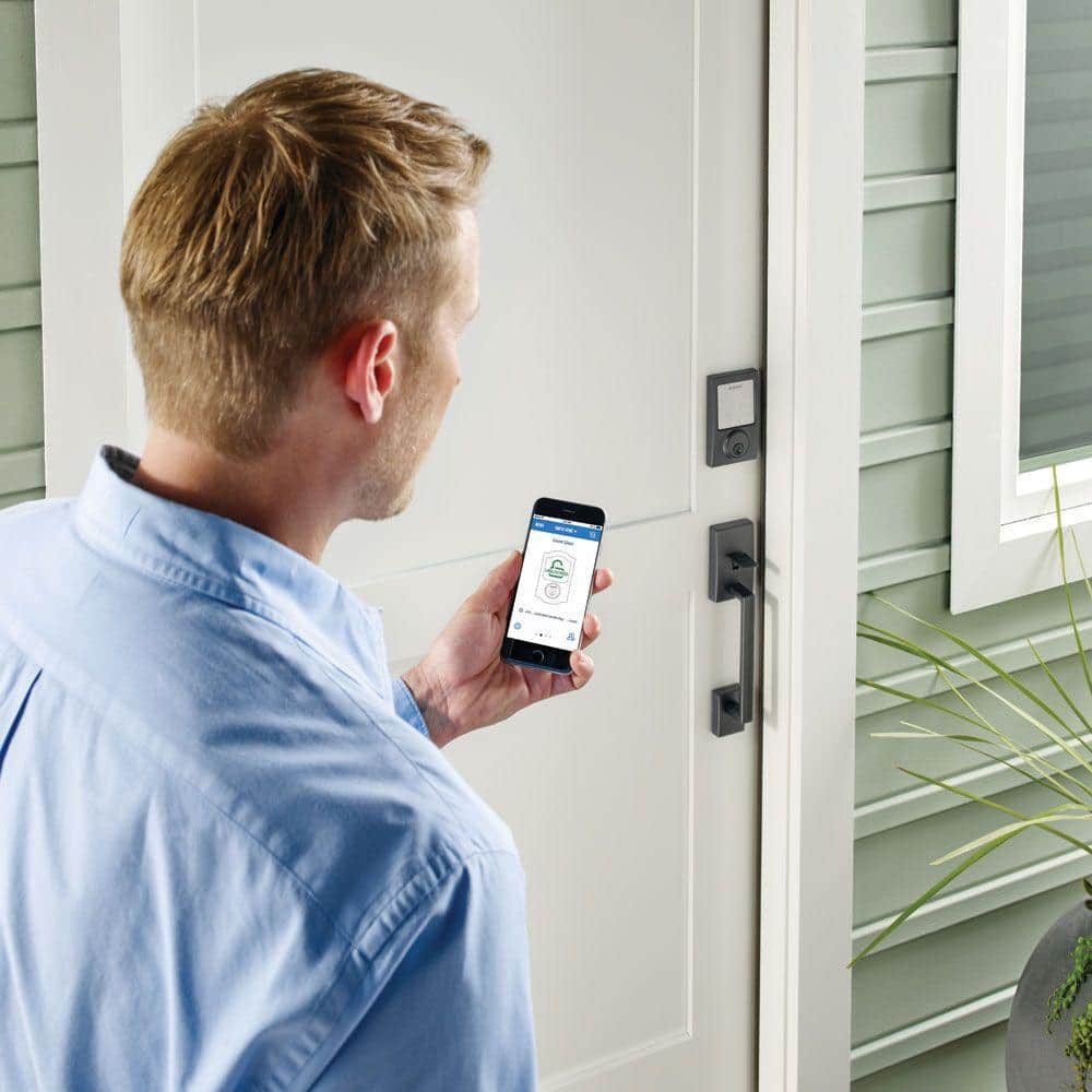 A: Yes. It connects via Bluetooth to the Schlage Home app; the Sense Wi‑Fi Adapter enables remote access from anywhere.