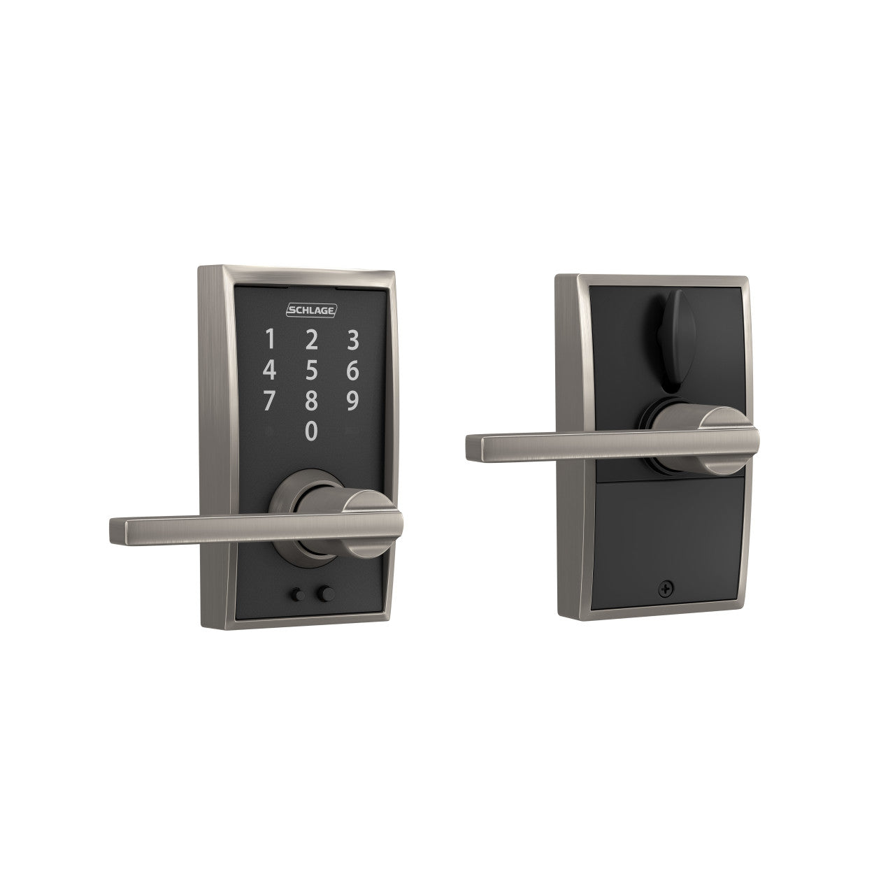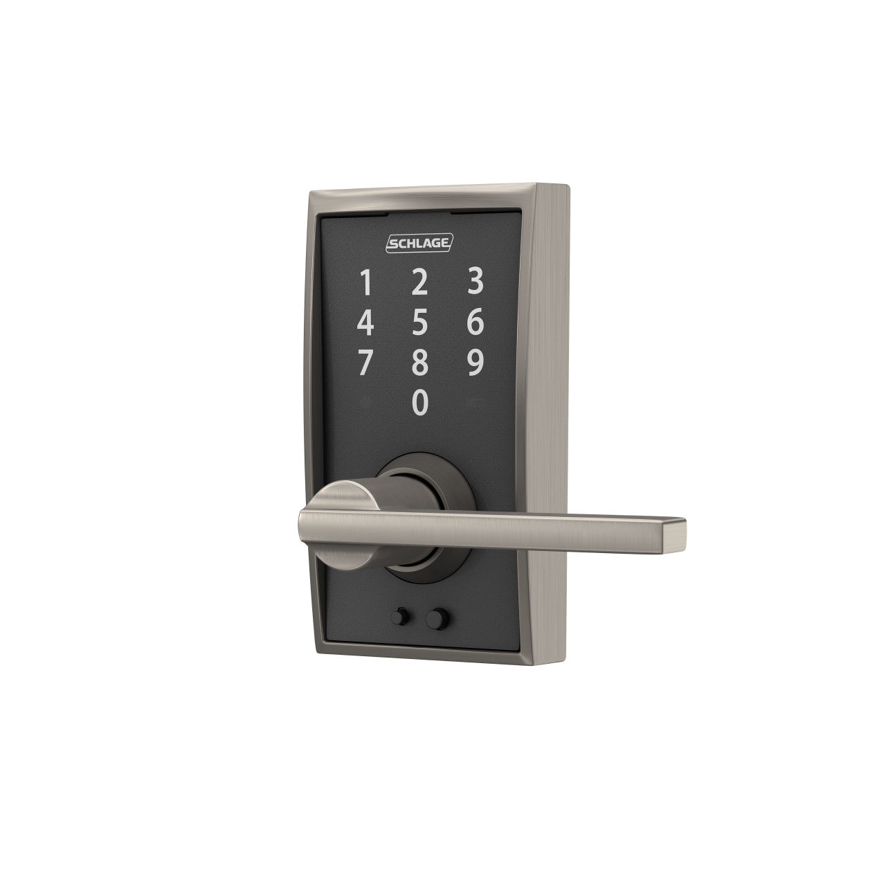 A sleek, keyless electronic lever lock that pairs Schlage’s Century trim with the modern Latitude lever. Designed for secure, everyday convenience, it features a touchscreen keypad, durable metal construction, and an industry‑leading warranty.