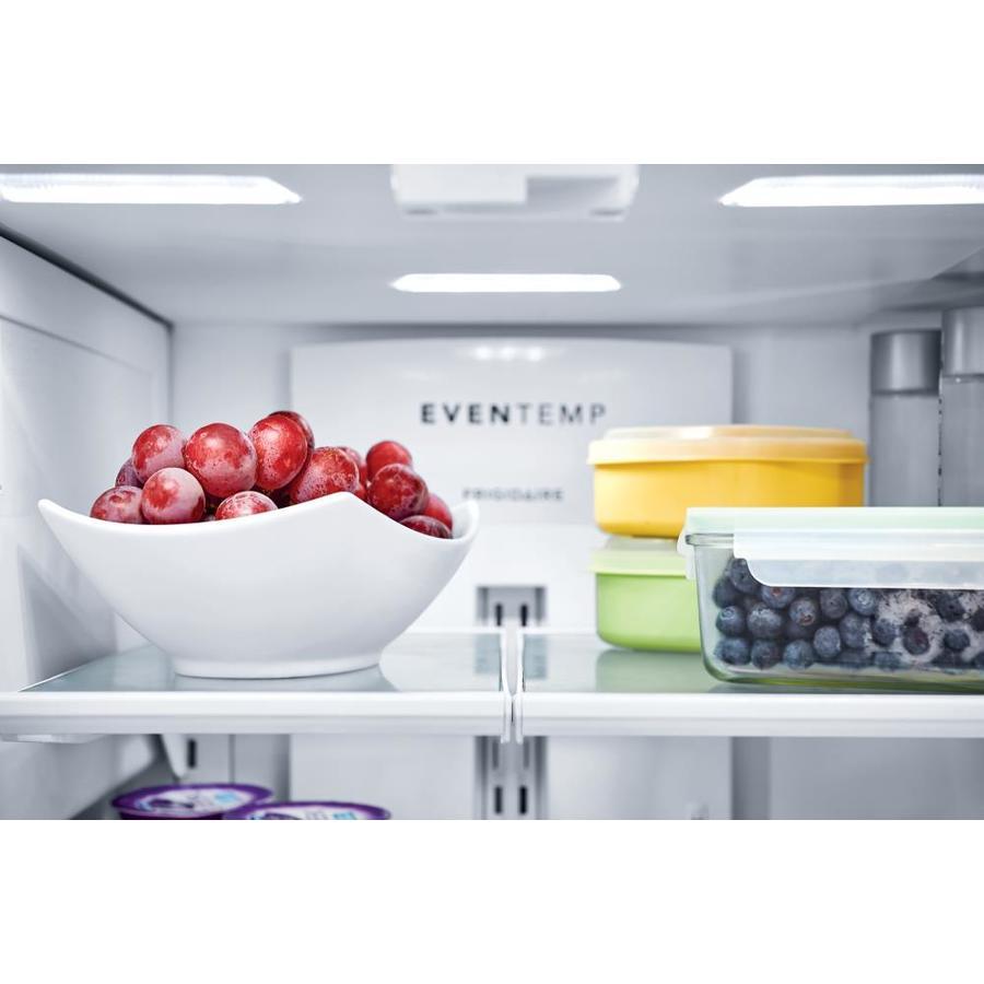 EvenTemp™ maintains an even temperature throughout the refrigerator to keep food fresher, longer Effortless™ glide humidity-controlled crisper drawers glide out smoothly, and keeps fruits and vegetables fresh and crisp Full-width Cool-Zone™ drawer extends completely and provides space to easily store anything from sheet cakes to snacks Edge-to-edge Store-More™ shelves gives you more space to store your food with PureSource Ultra® II Water Filters remove 99.3% of lead and 99.9% of cysts from your household water Multi level LED lighting throughout the refrigerator for better visibility Store-More™ bins are designed to store more, so you can fit a gallon of milk Dual ice ready for second ice maker and room to store up to 19-1/2 lbs of ice (order ice maker kit IMK0028A) Effortless™ glide freezer drawers glide out smoothly and fully extend, giving you easy access to what's inside