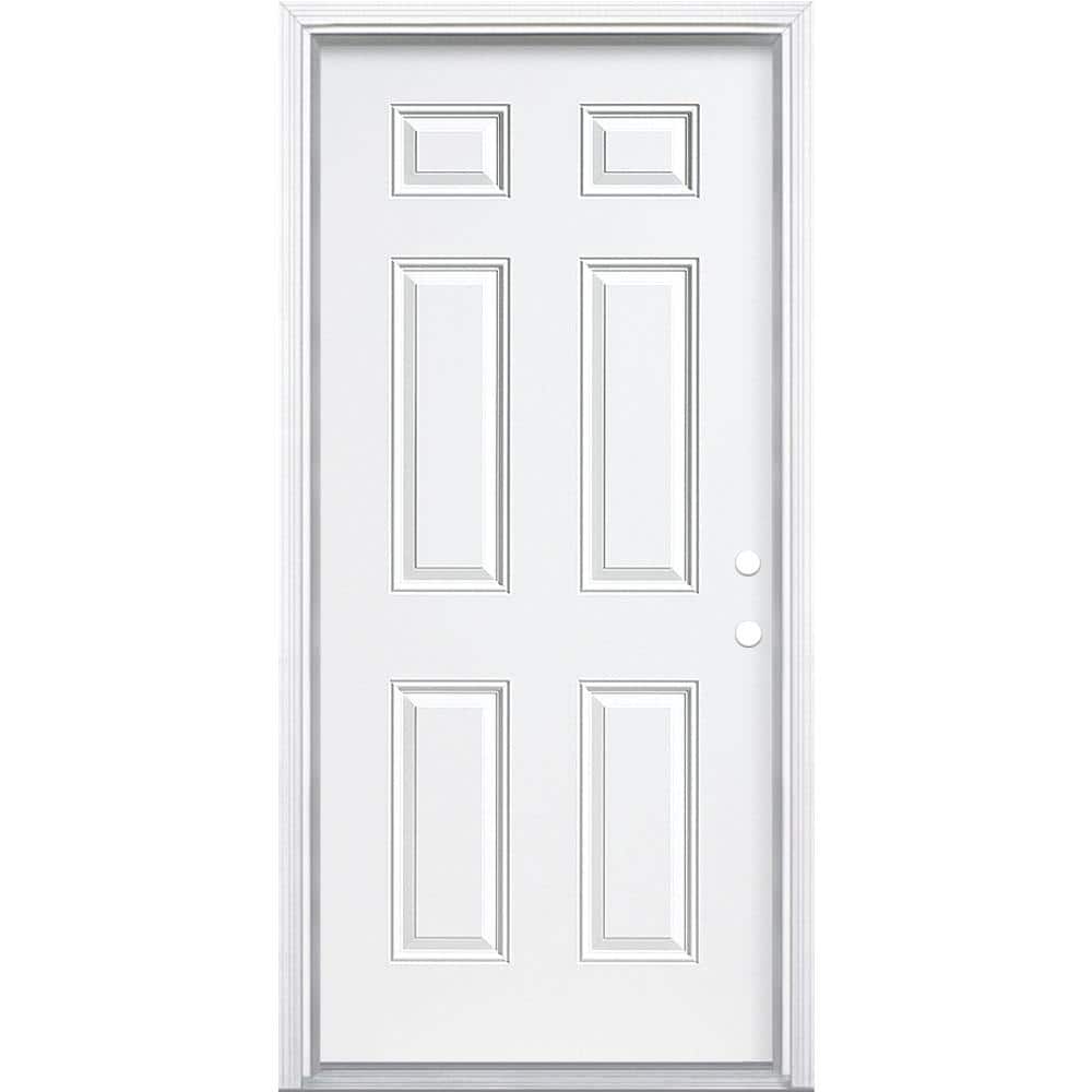 Masonite 36 in. x 80 in. Premium 6-Panel Left-Hand Inswing Primed Steel Prehung Front Exterior Door with Brickmold