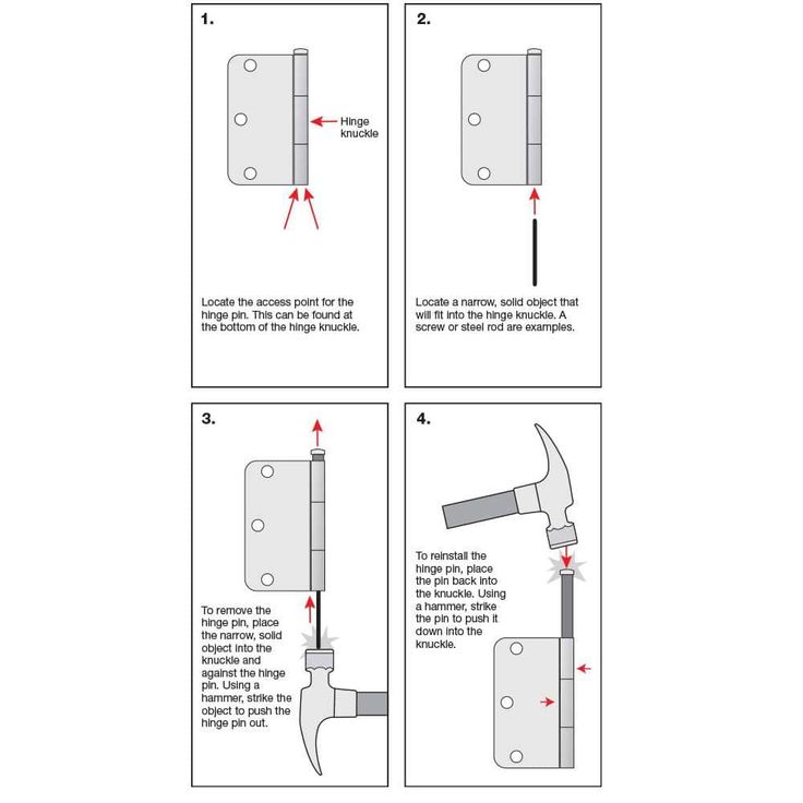 • Removable pin provides easy installation or removal of a door