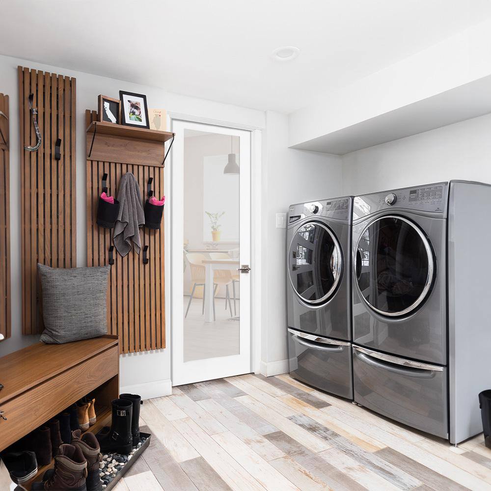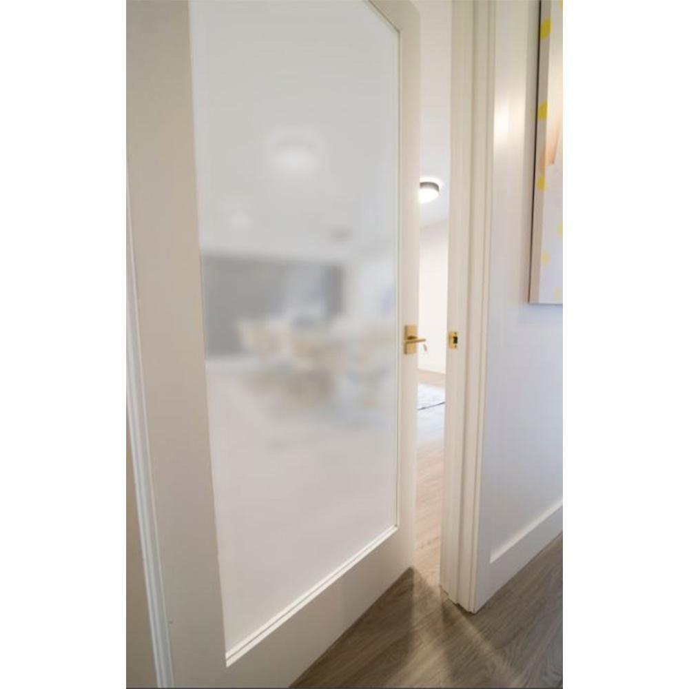 This full-lite door washes a room with a soft, luminous glow while keeping life serenely private. The satin-etched pane framed by crisp Shaker lines feels impeccably tailored—modern yet timeless. Pair it with warm brass hardware and layered neutrals to create a subtly glamorous threshold to your pantry, office, or laundry. It’s a refined essential that elevates everyday living with quiet luxury.