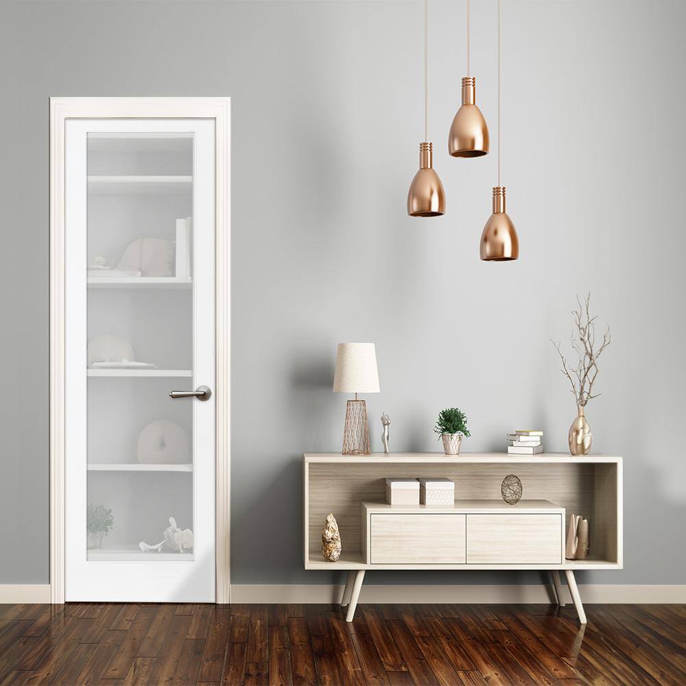 Upgrade interiors with a full-lite satin-etched glass door slab that delivers privacy while allowing light to flow. Built with a solid-core MDF construction and primed finish, it’s ready to paint and designed for durability and sound insulation in bedrooms, pantries, offices, and more.