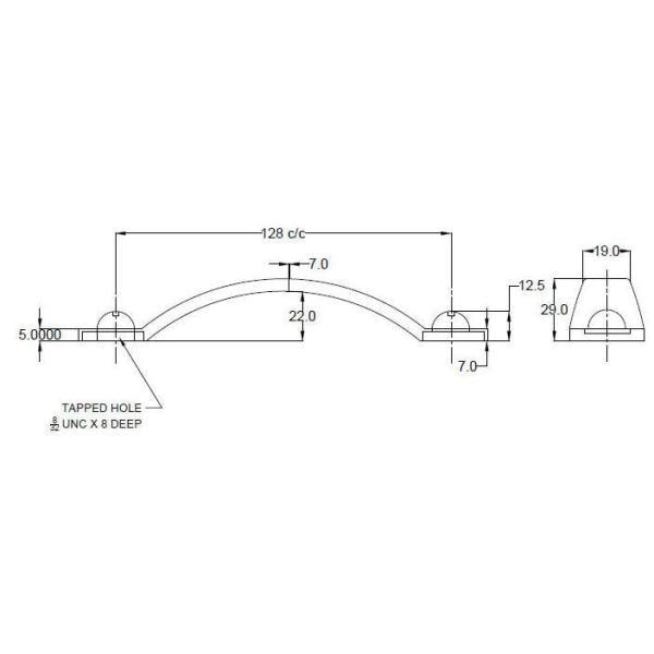 • Center to Center measurement (distance between the drill holes) : 5 1/16 in (128 mm)