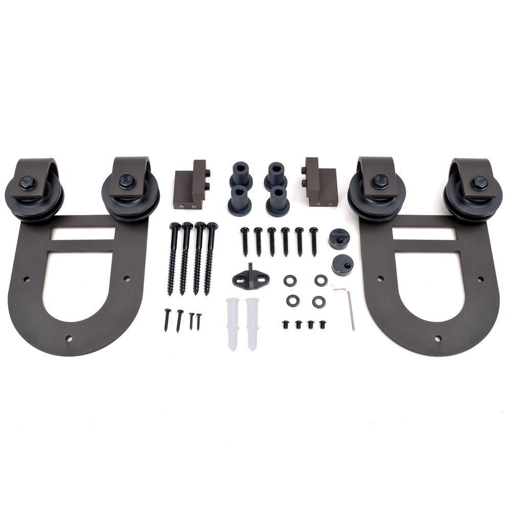 72 in. Antique Bronze Rustic Horseshoe Barn Style Sliding Door Track and Hardware Set