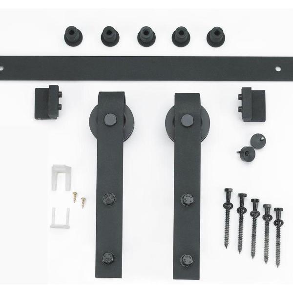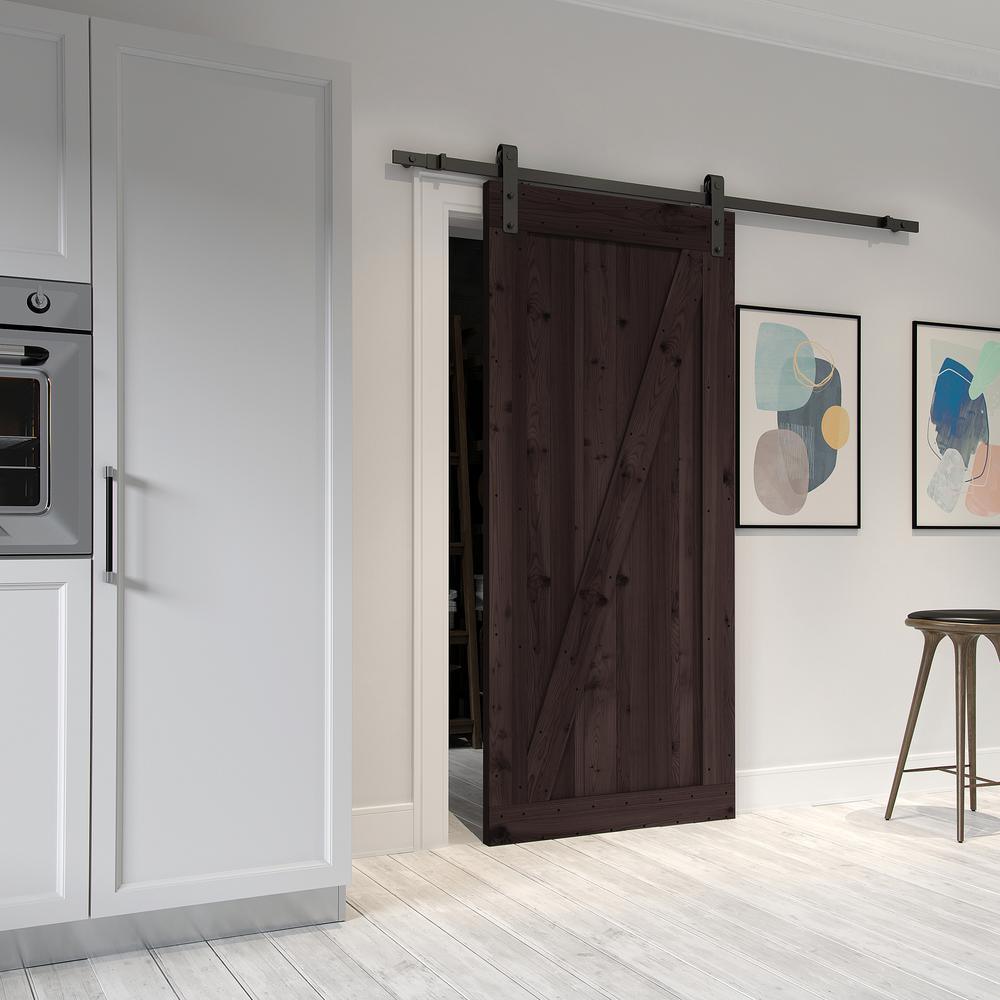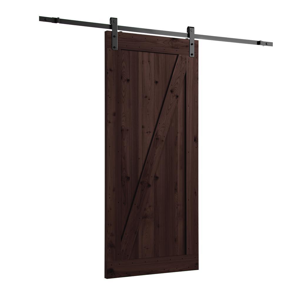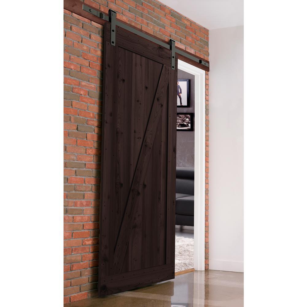 36 in. x 84 in. Canadian Hemlock Distressed Smoke Sliding Barn Door with Hardware Kit