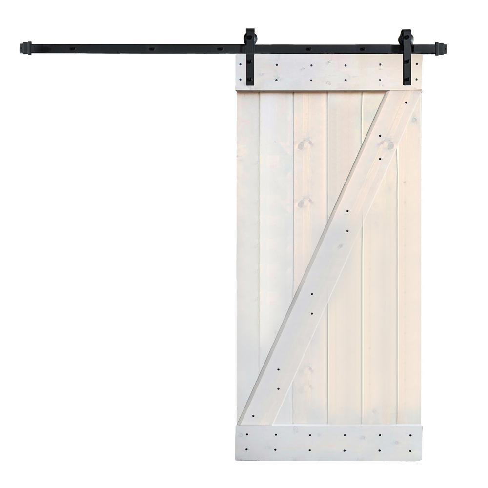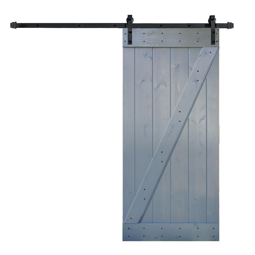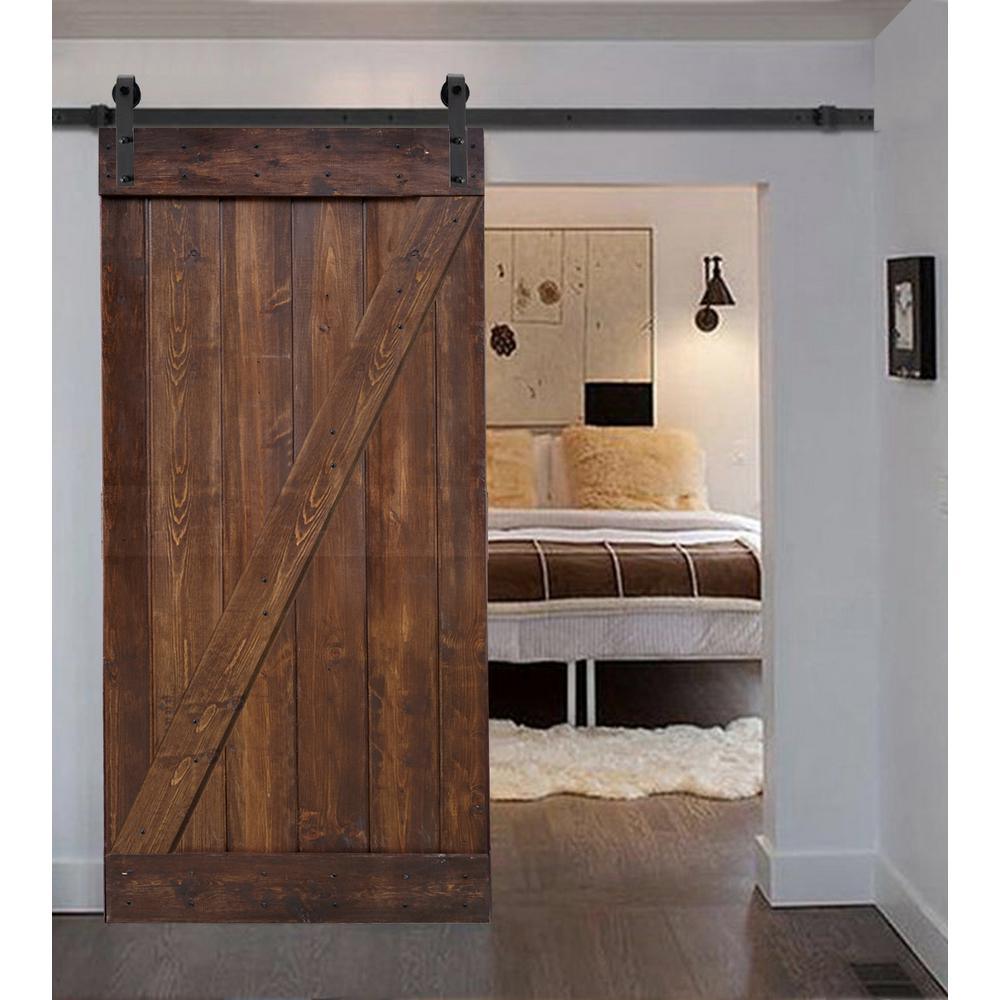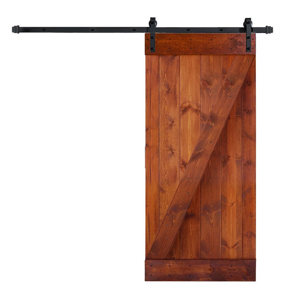 36 in x 84 in Z Series DIY Dark Walnut Finished Knotty Pine Wood Sliding Barn Door Slab with Hardware Kit