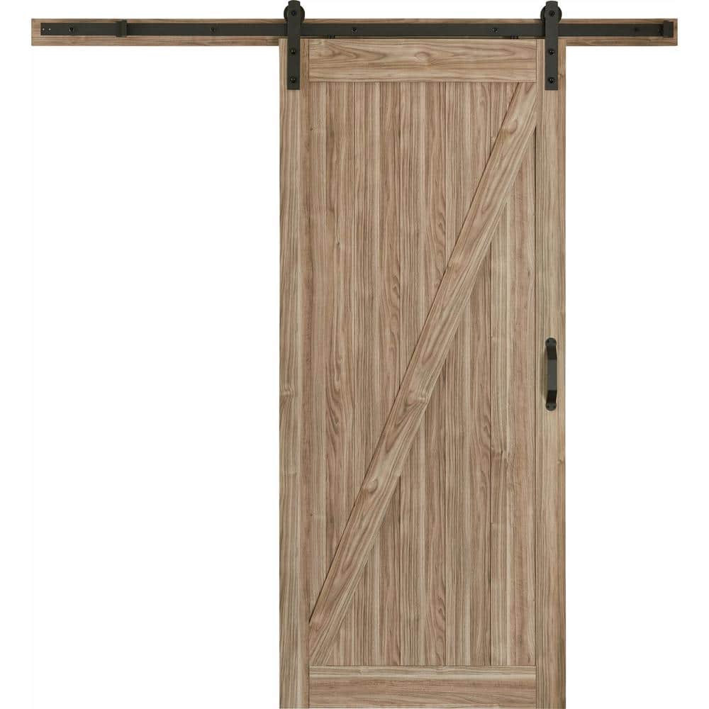 Masonite 36 in. x 84 in. Z-Bar Ash Gray Finished Composite Interior Sliding Barn Door Slab with Hardware Kit