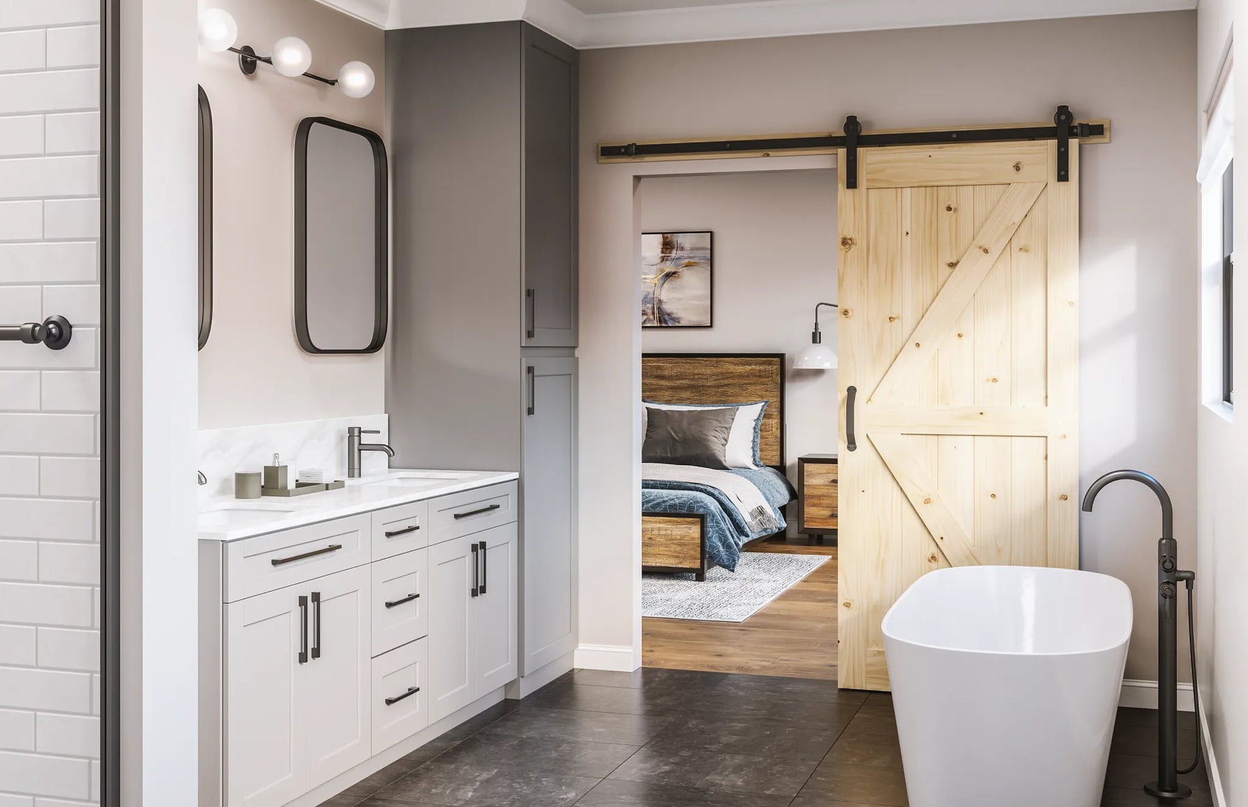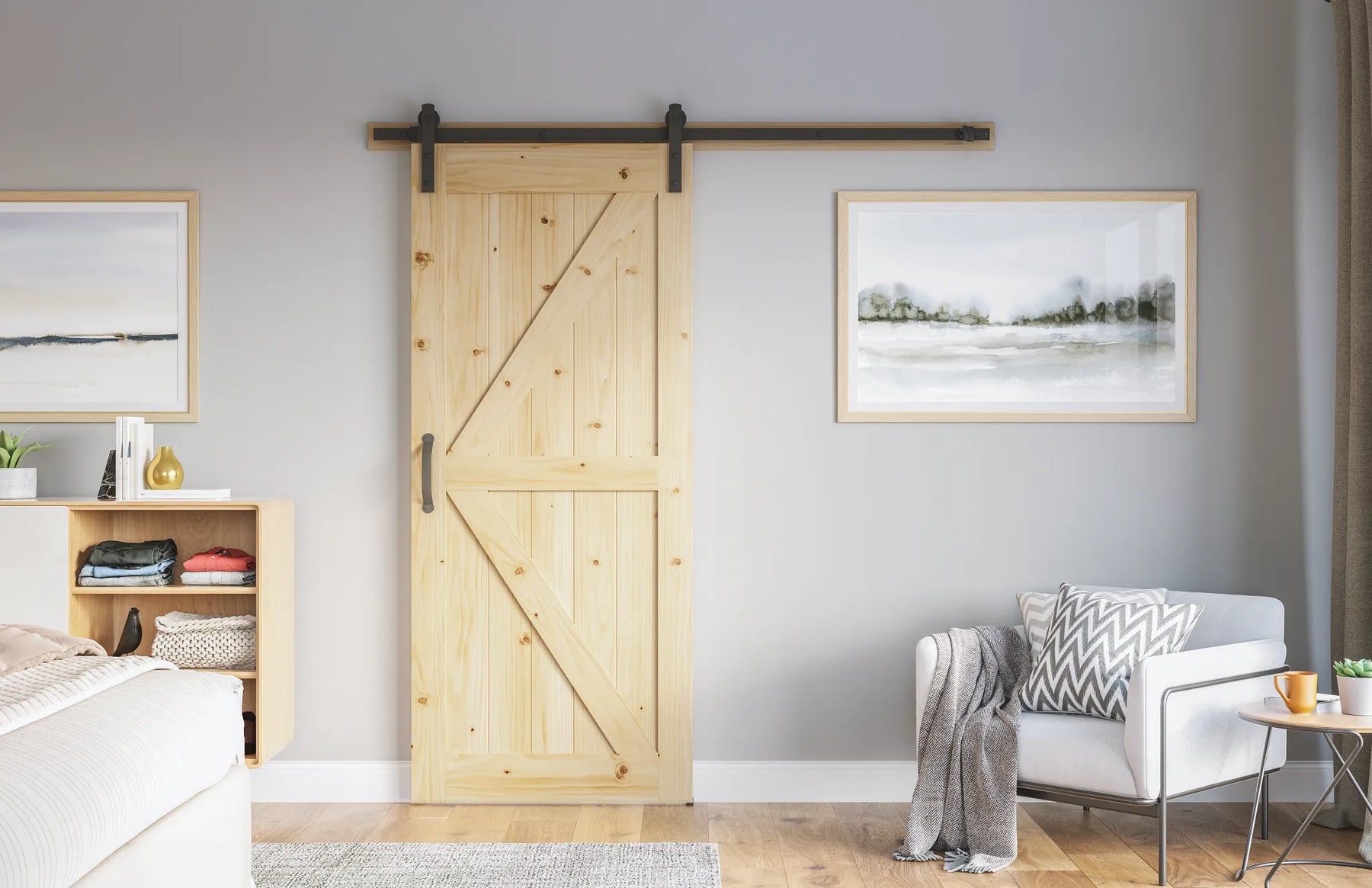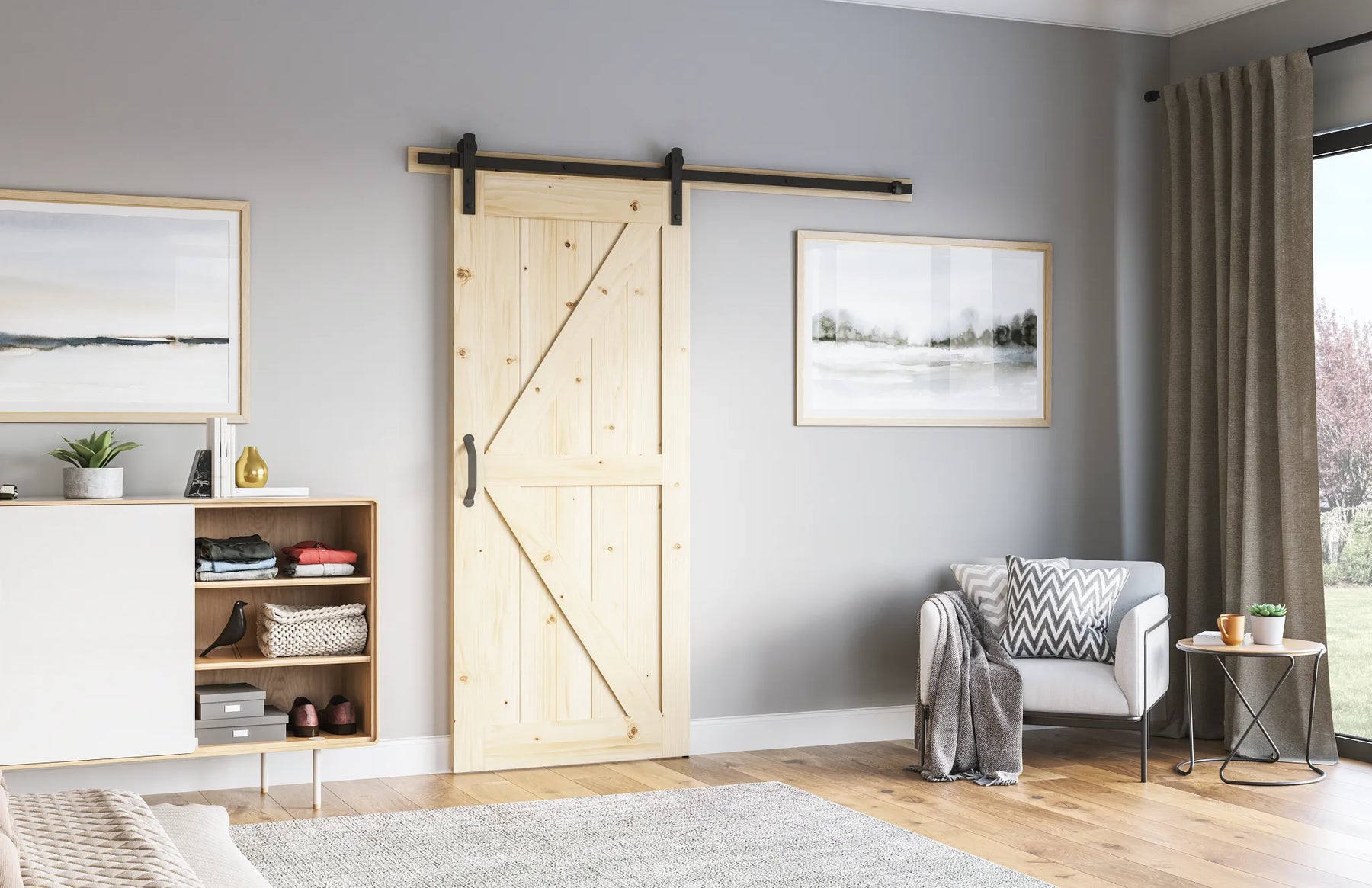 Bring home effortless style and extra space today—upgrade your room with this ready-to-install knotty pine barn door kit.