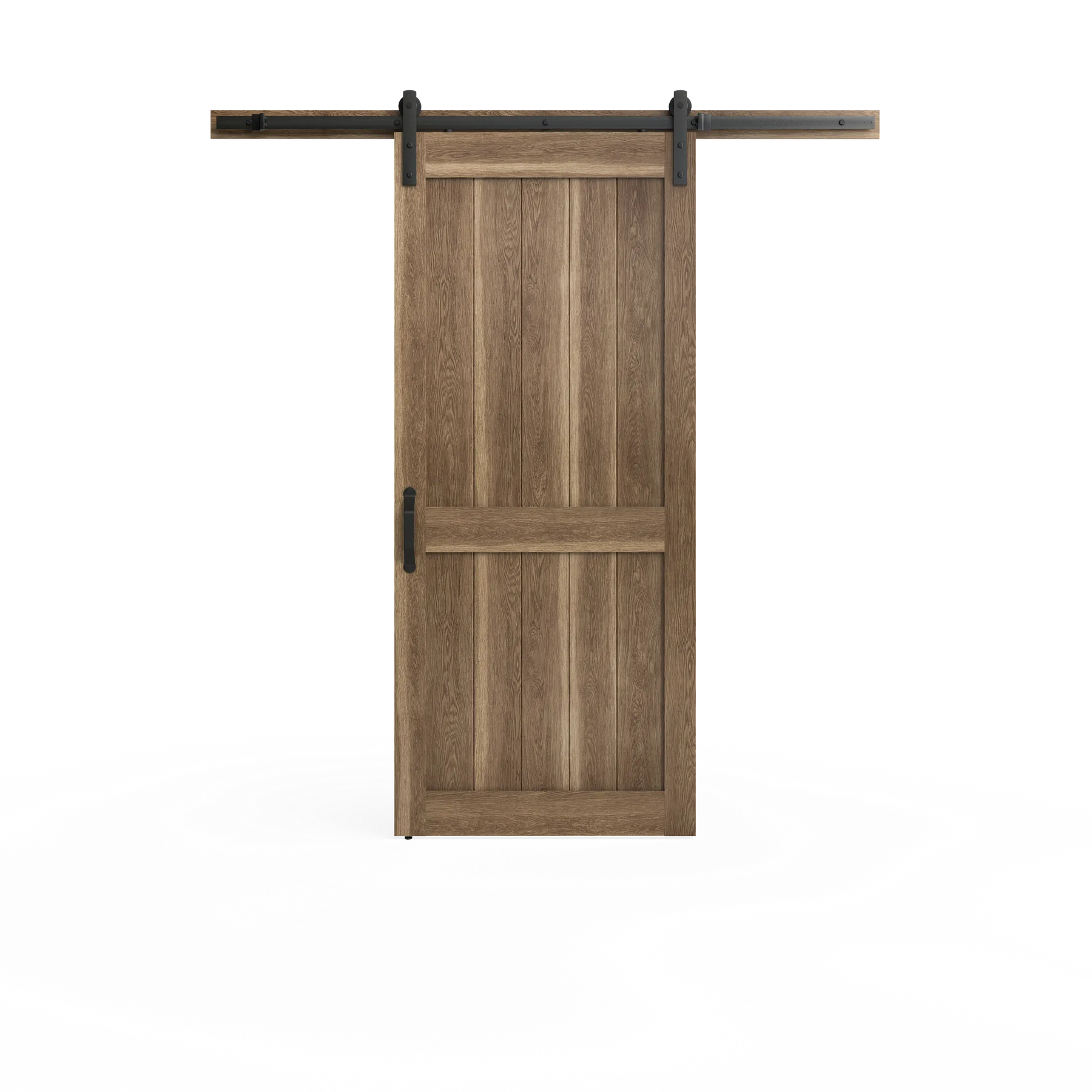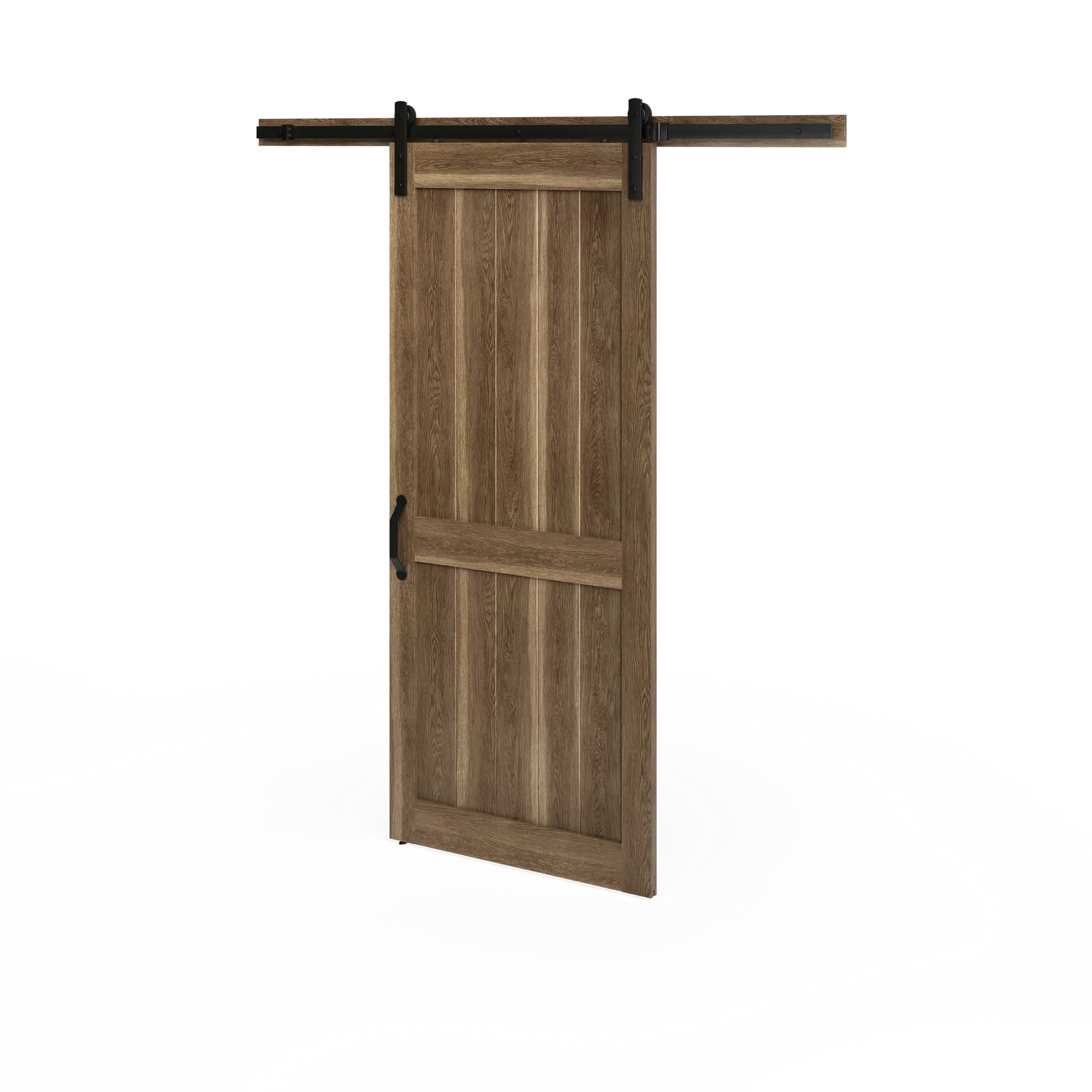 Masonite 36 in. x 84 in. 2 Panel Plank Sandy Brown Interior Sliding Barn Door Slab with Hardware Kit