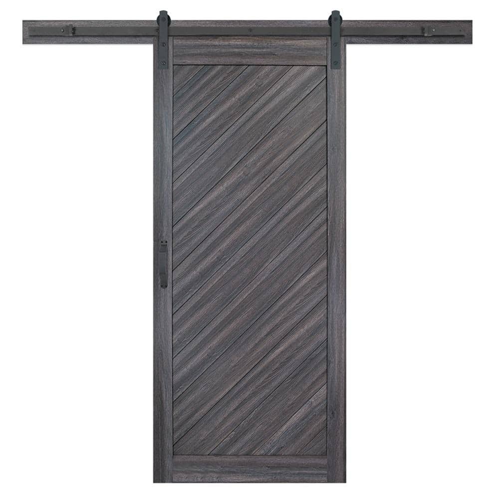 Masonite 36 in. x 84 in. Diagonal Stormy Gray Interior Sliding Barn Door Slab with Hardware Kit