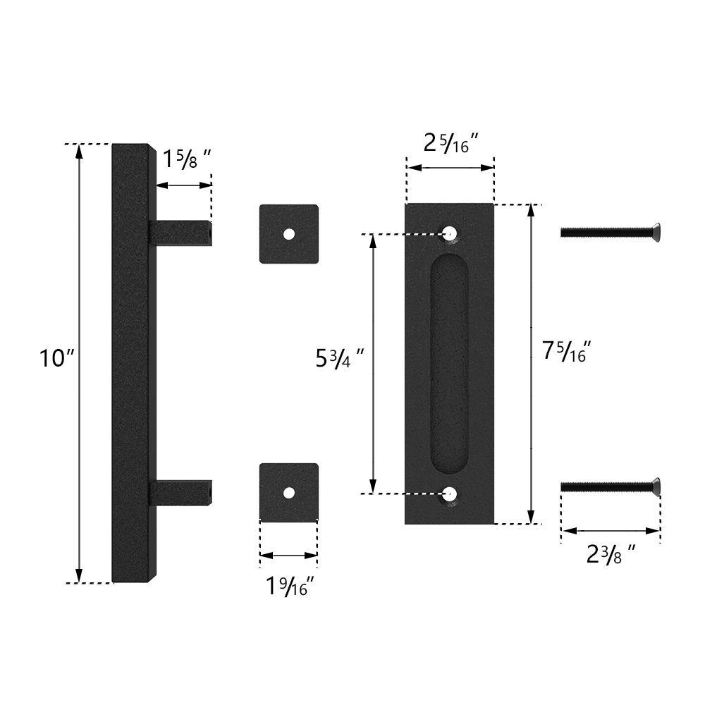 10 in. Black Square Pull and Flush Sliding Barn Door Handle Set