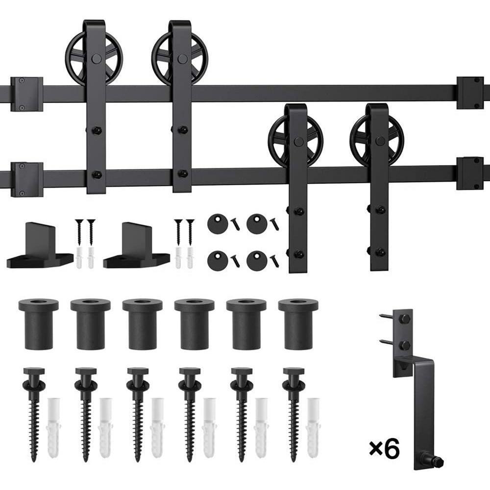 9 ft./108 in. Black Sliding Bypass Barn Door Hardware Track Kit for Double Doors with Non-Routed Floor Guide