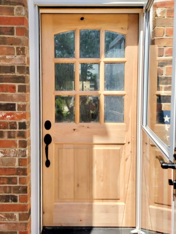36x80 Rustic Knotty Alder 9-Lite Arch Top Front Door Slab