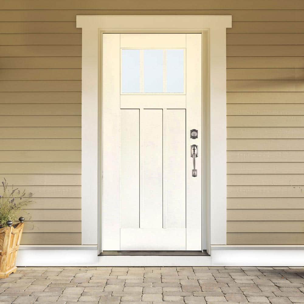 36 in. x 80 in. Smooth White Left-Hand Inswing LowE Classic Craftsman Finished Fiberglass Prehung Front Door