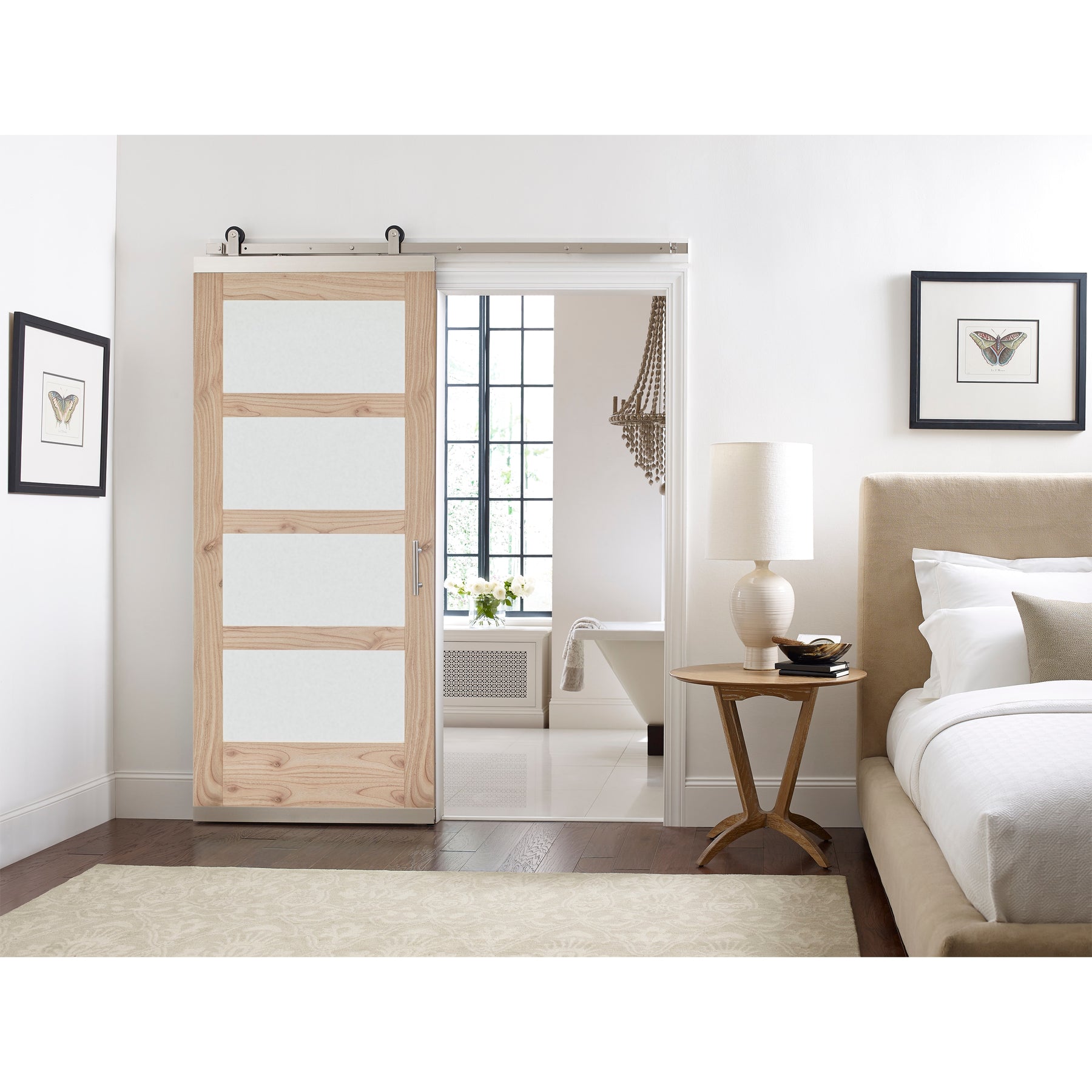 JELD-WEN 36-in x 80-in Unfinished Frosted Glass White Cedar Wood Single Barn Door
