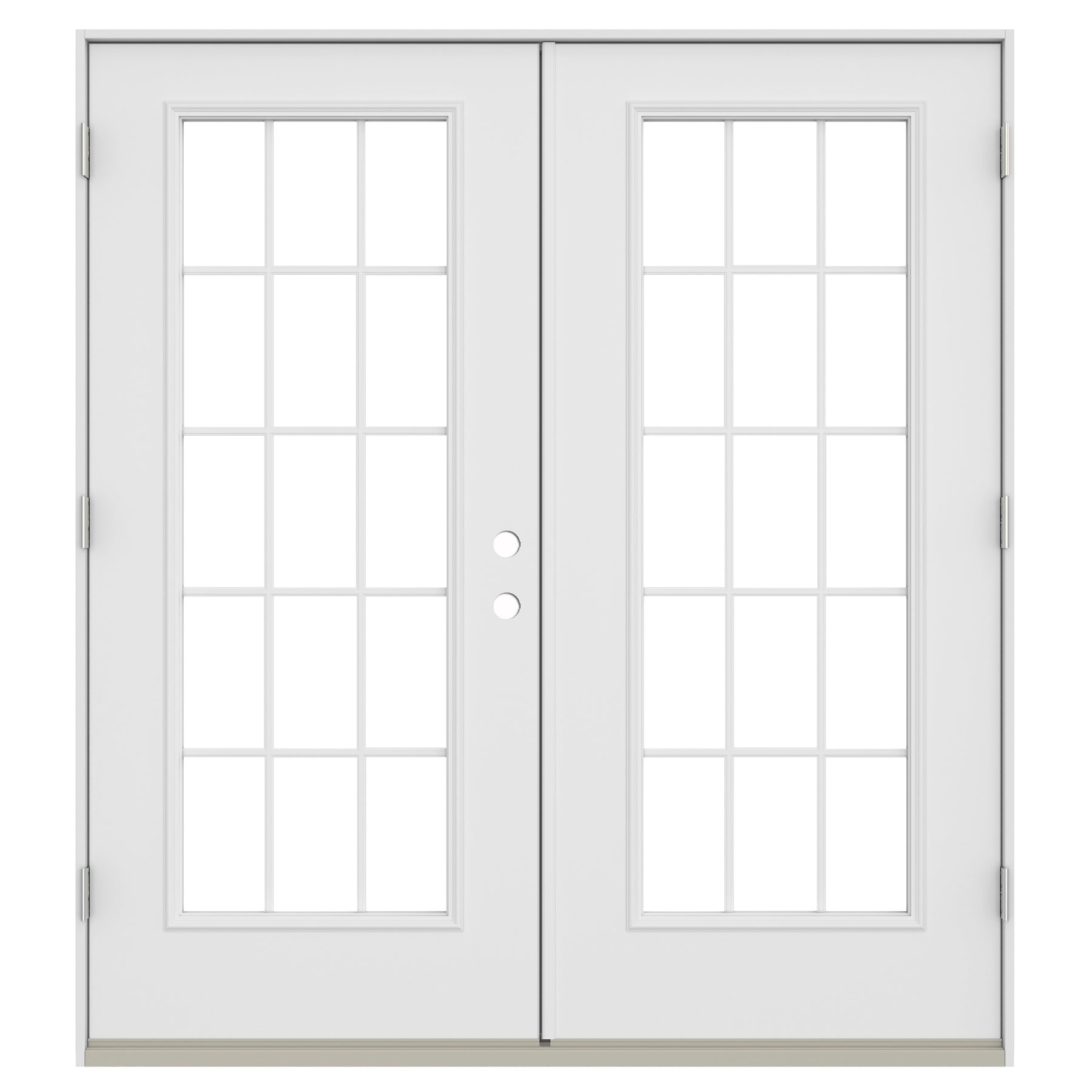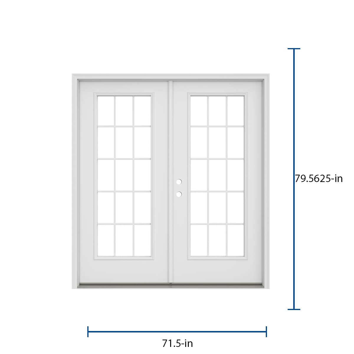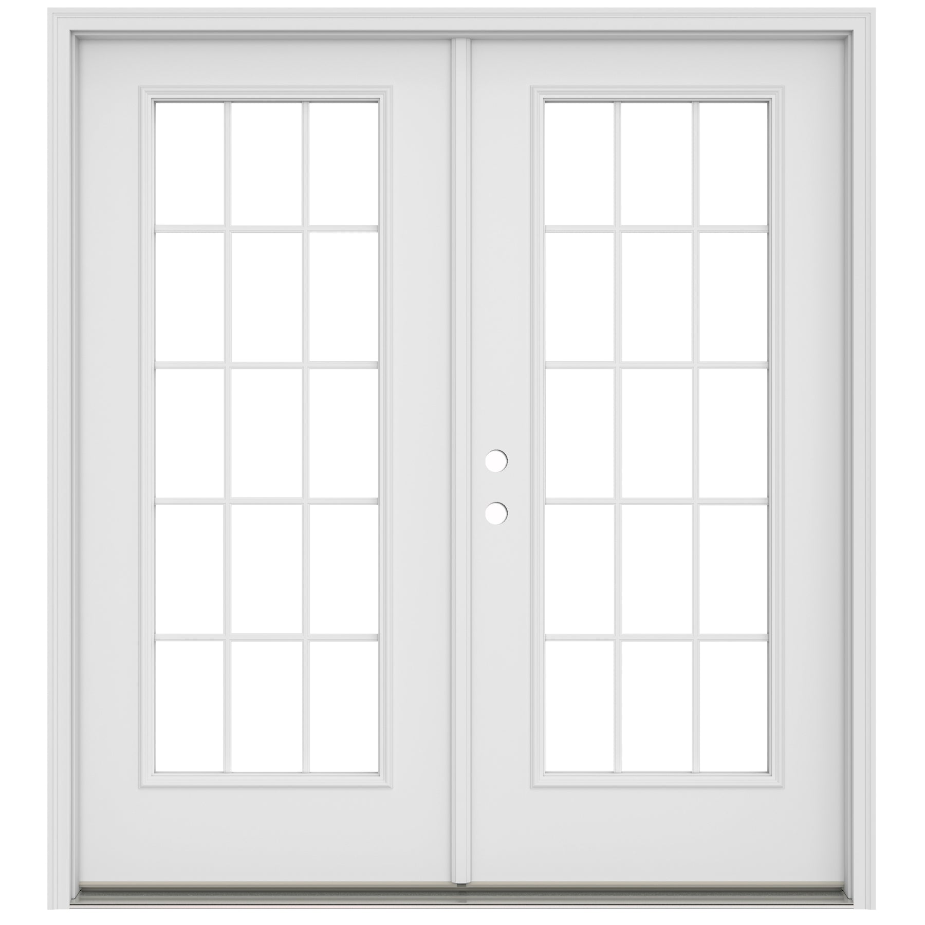 JELD-WEN 72-in x 80-in 4-9/16-in Low-E External Grilles Primed Steel French Right-Hand Inswing Double Patio Door