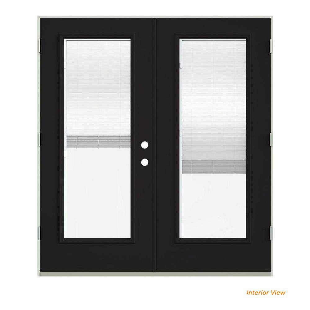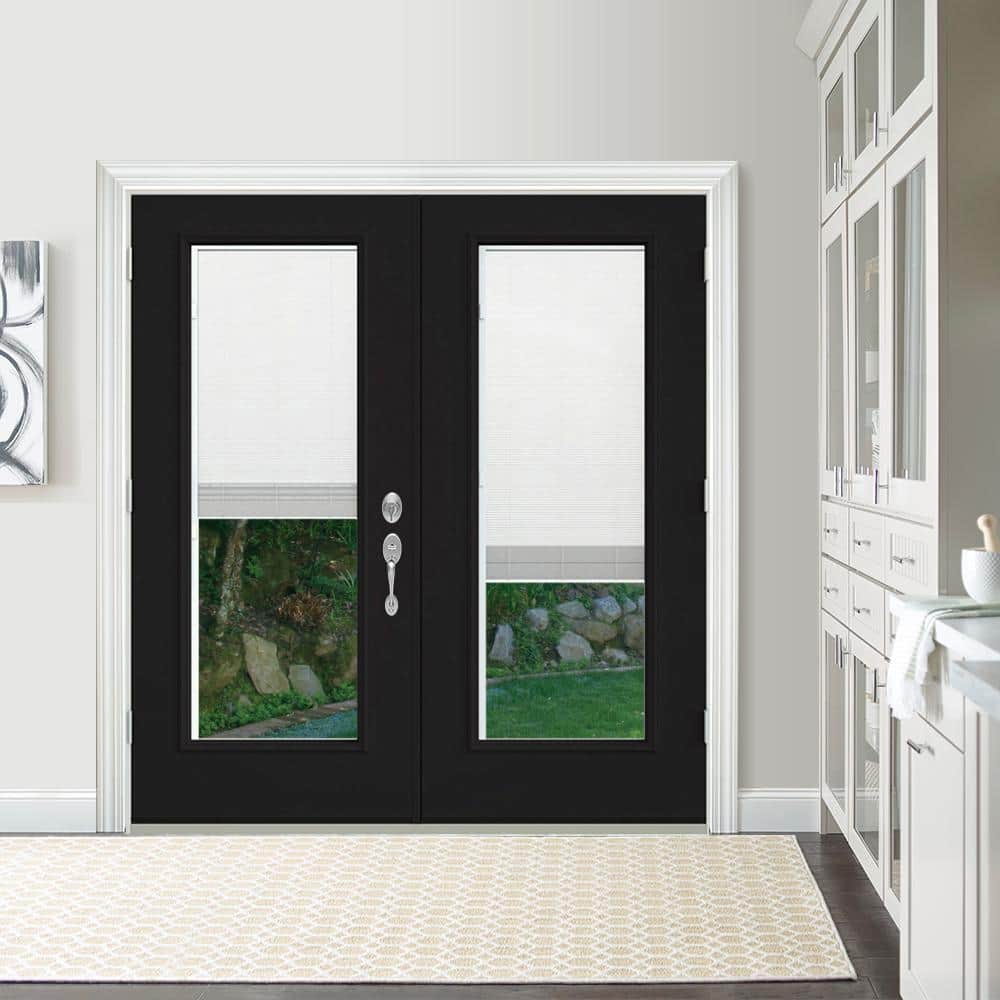 JELD-WEN 72 in. x 80 in. Black Painted Steel Right-Hand Inswing Full Lite Glass Stationary/Active Patio Door