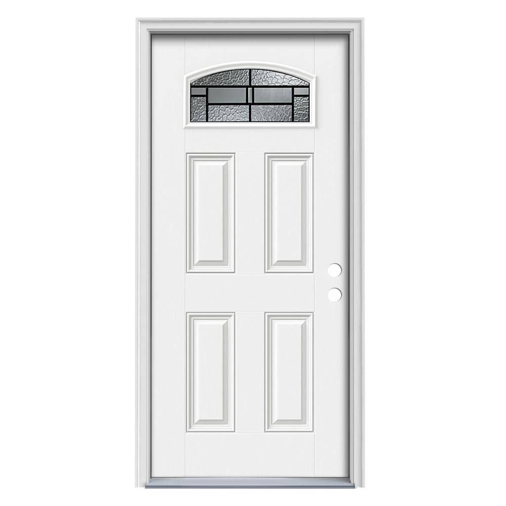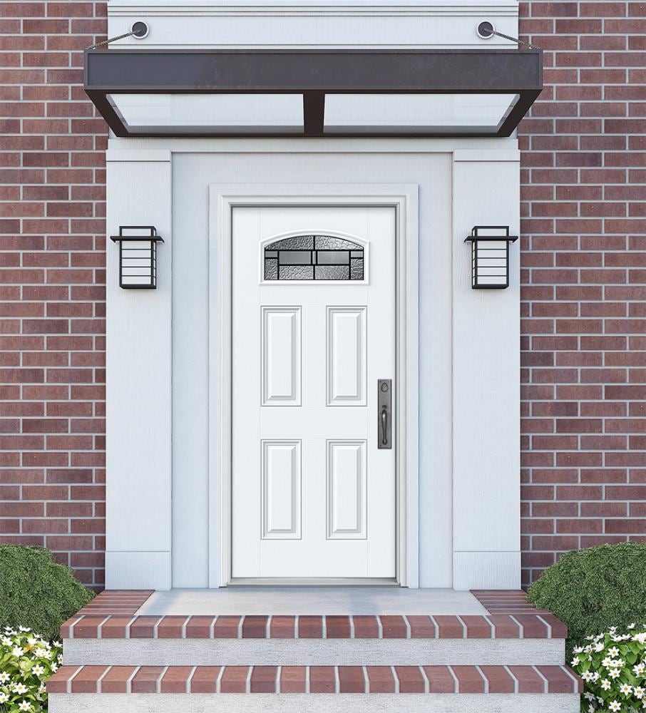 The Pembrook welcomes with a crisp, painted-wood look in resilient fiberglass—elegant yet effortless. Its arched 1/4-lite glass, traced with patina caming, adds a tailored sparkle that lifts any facade. Style it with a satin nickel handle set and layered planters to accent the clean geometry. This door is a quiet luxury essential, marrying performance with enduring curb appeal.