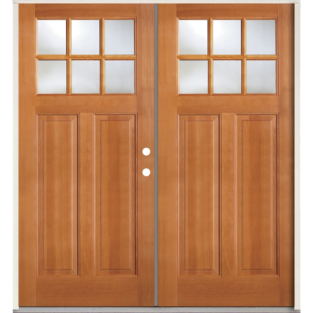 Transform your entryway with the SIMPSON Prehung Double Front Door, crafted from rich, Douglas fir wood for a timeless appeal. This 72-inch-wide, solid core door features a sophisticated 1/4 lite clear glass panel that adds elegance to any home while maintaining privacy and energy efficiency.