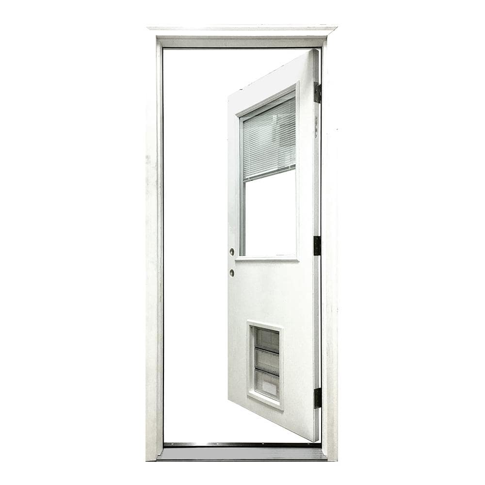 Steves & Sons 36 in. x 80 in. Reliant Series Clear Mini-Blind RHIS White Primed Fiberglass Prehung Front Door with Extra Large Pet Door