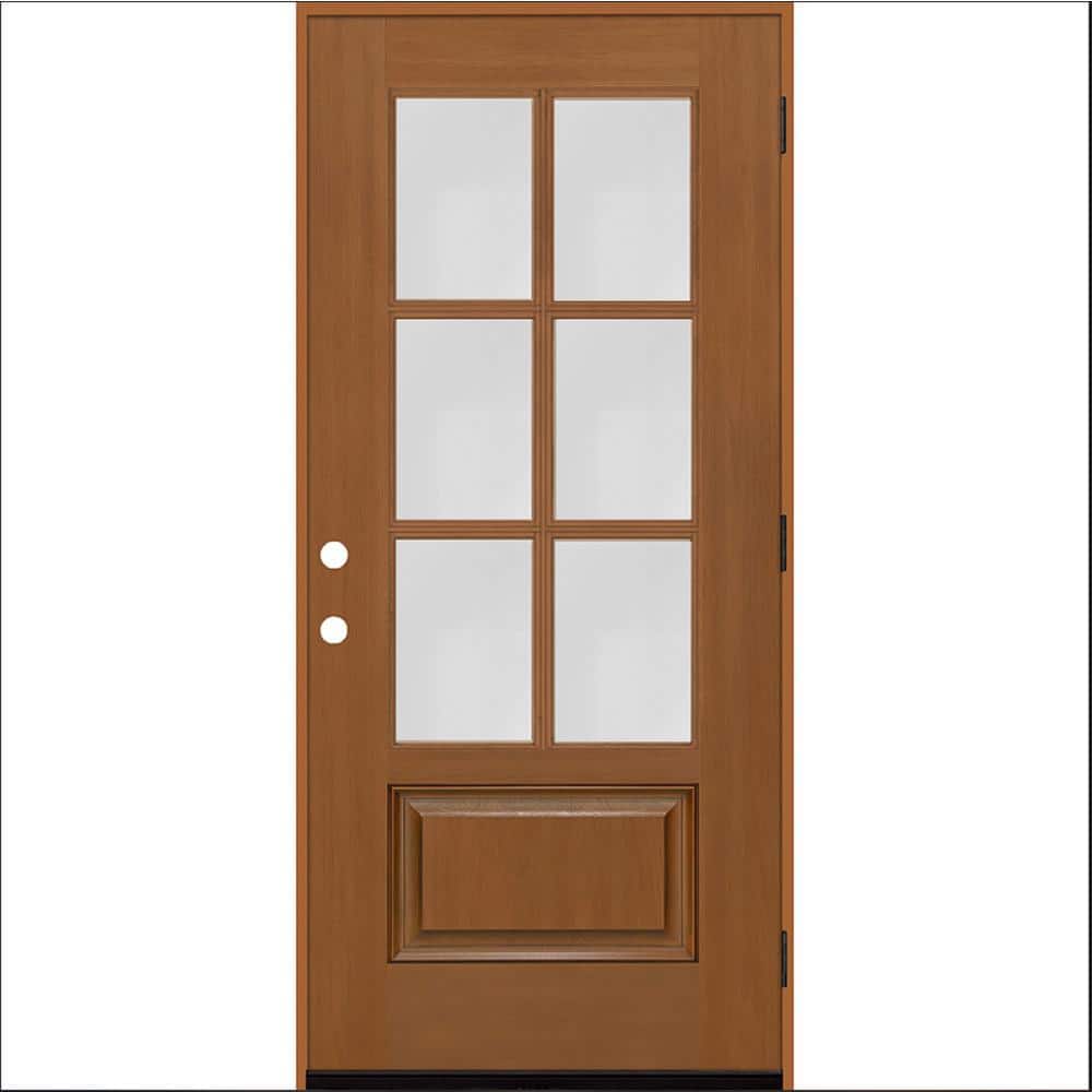 Regency Mahogany-Grain Fiberglass Prehung Front Door, 36x80, 3/4-6 Lite Clear Glass LHOS