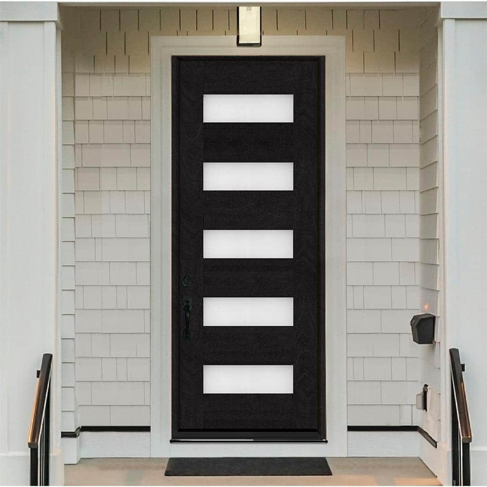 - Modern Aesthetic: Onyx stained finish with 5-lite rectangular glass layout elevates curb appeal