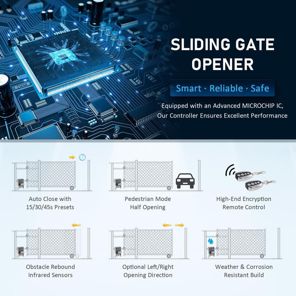DOORADO Automatic Sliding Gate Opener Kit with Infrared Sensors for 4400lb Doors