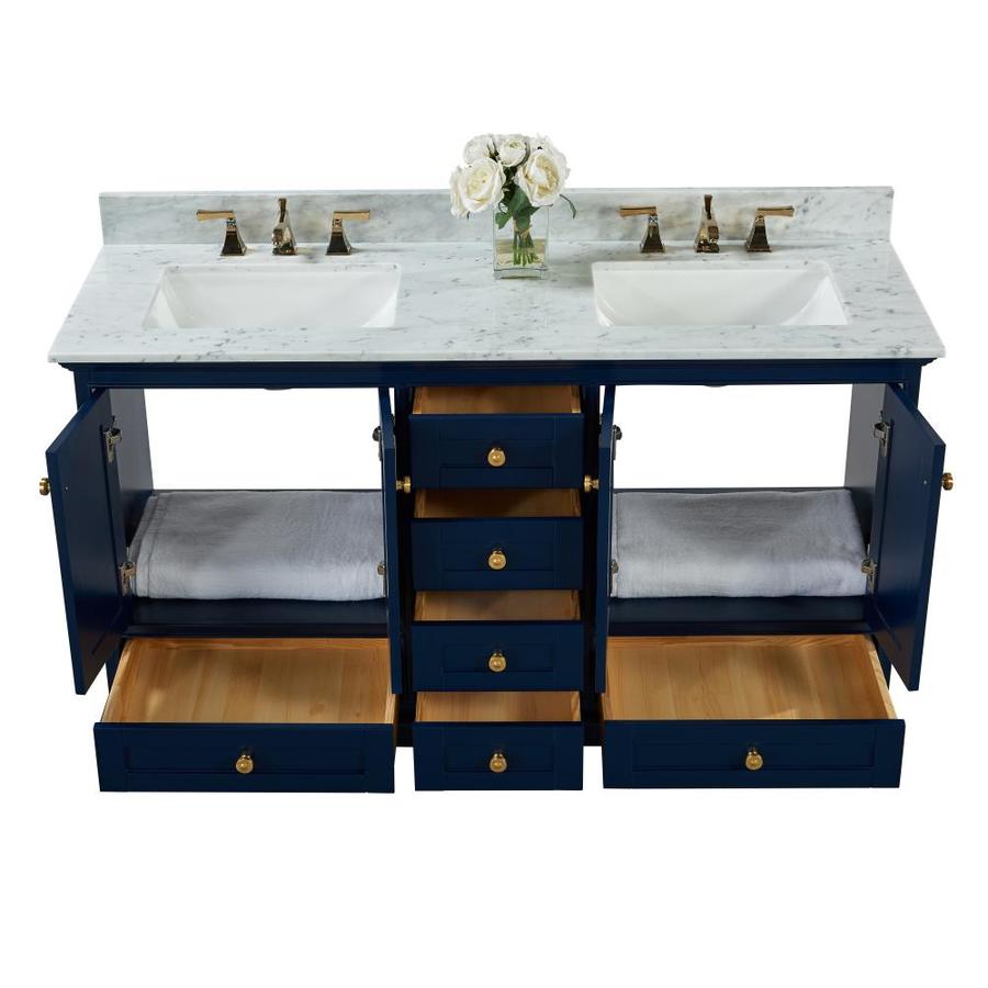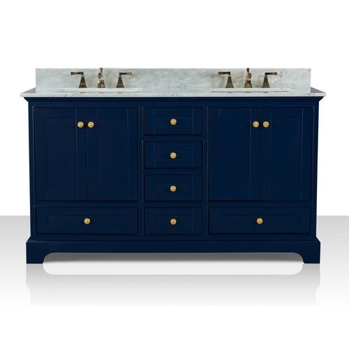 Ancerre Designs Audrey 60-in Heritage Blue Double Sink Bathroom Vanity with Carrara White Natural Marble Top