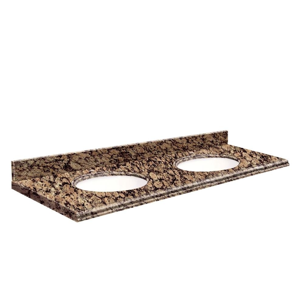 Upgrade your bath with a pre-sealed Baltic Brown natural granite vanity top from Transolid. This 61-in top includes a 4-in backsplash and two undermount oval vitreous china sinks, offering durable, stain-resistant performance and a high-end look.