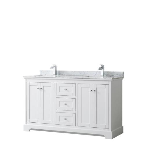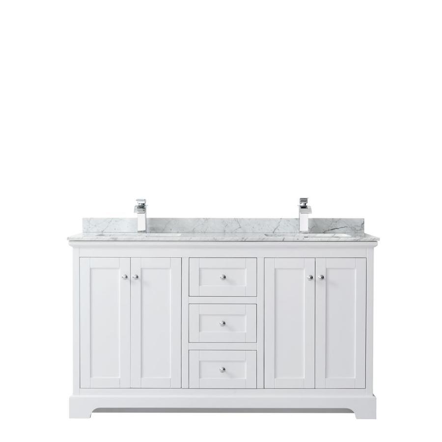 Wyndham Collection Avery 60-in White Double Sink Bathroom Vanity with White Carrara Marble Top