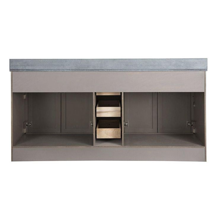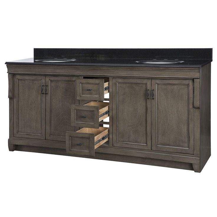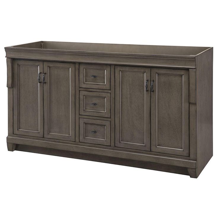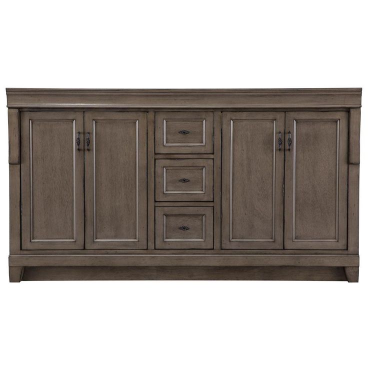 The Naples 60 in. vanity has dark birdcage-style steel handles that add a decorative touch to your bathroom. The cabinet's 3 drawers feature dovetail-style joints for enhanced durability and fully-extend to hold a great number of your personal items. Open its 4 beautiful doors and discover an even larger storage area that's perfect for stacks of towels and a wide array of bath, skincare and household items. Fully-assembled for your convenience, the cabinet has double centerset basins that are ready for the installation of a vanity top (not included).
