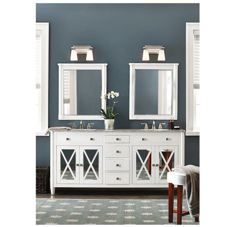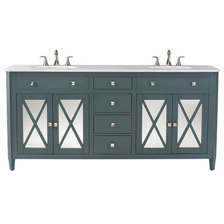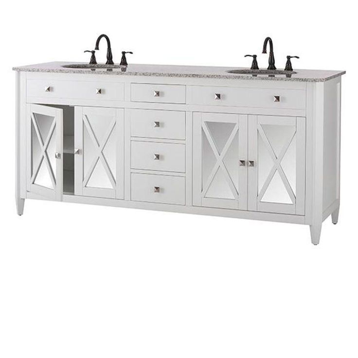 From its flat-front drawers to the crisscross design of its mirrored doors, our Barcelona Double Bath Vanity is an elegant confluence of straight lines. The geometric look is capped off by a smooth white marble top and square, silver-finish knobs. Choose double bath vanities for extra elbow room and storage; this one features 2 under-sink cabinets with a single shelf each and 4 drawers to catch all your bath essentials. Crafted of real marble, the vanity top may contain swirling or veining. These features are part of the natural beauty of stone and have no effect on function or durability.