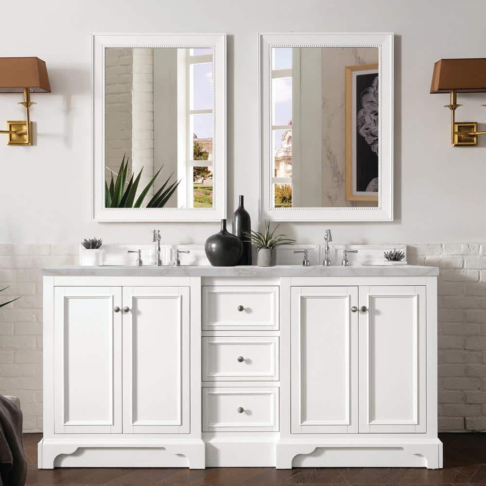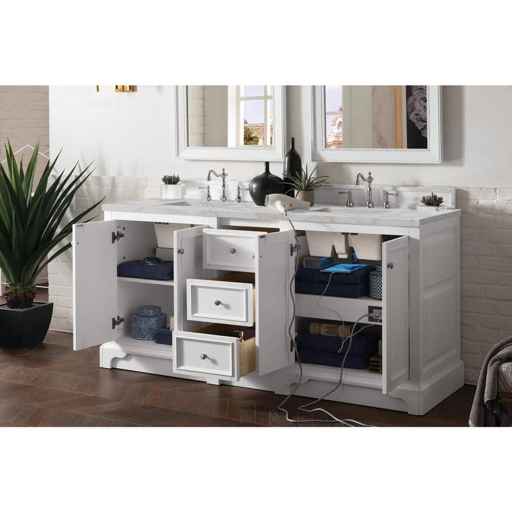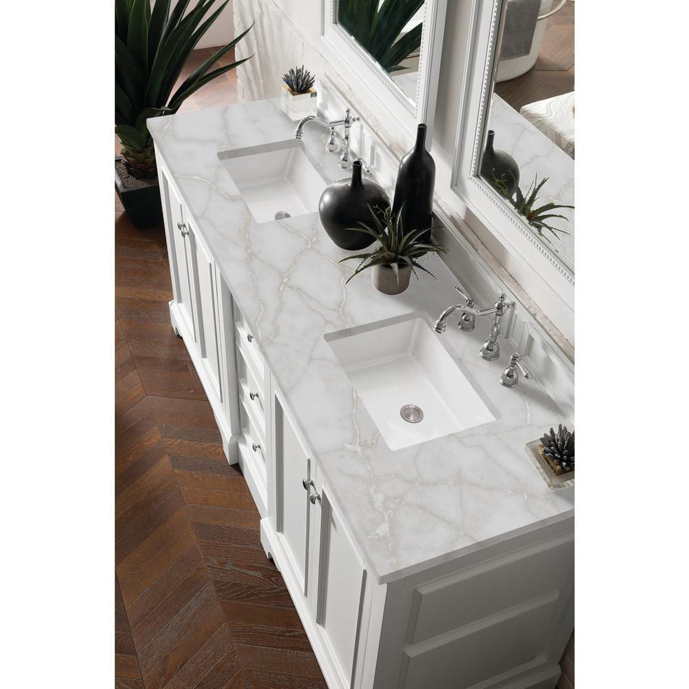 James Martin Vanities De Soto Double Bathroom Vanity with Victorian Silver Quartz Top, Bright White, 73.3 in. Width