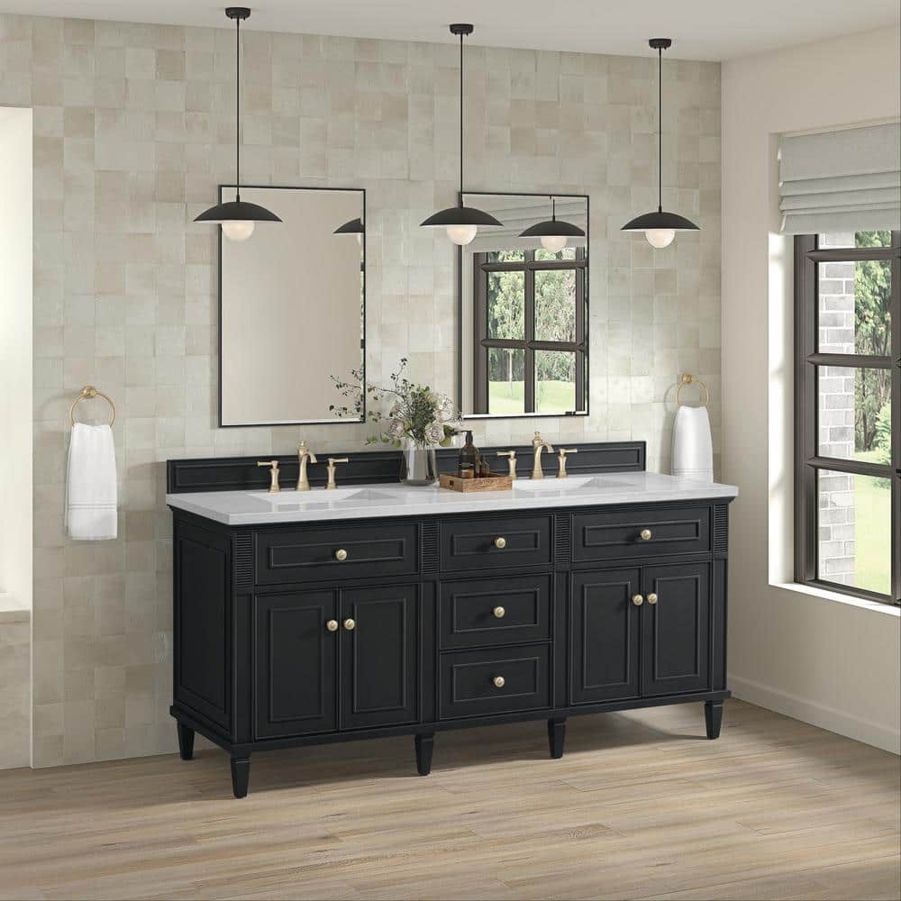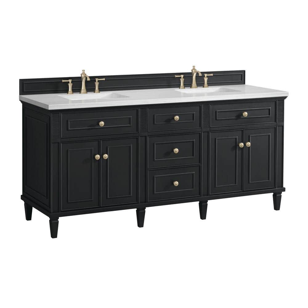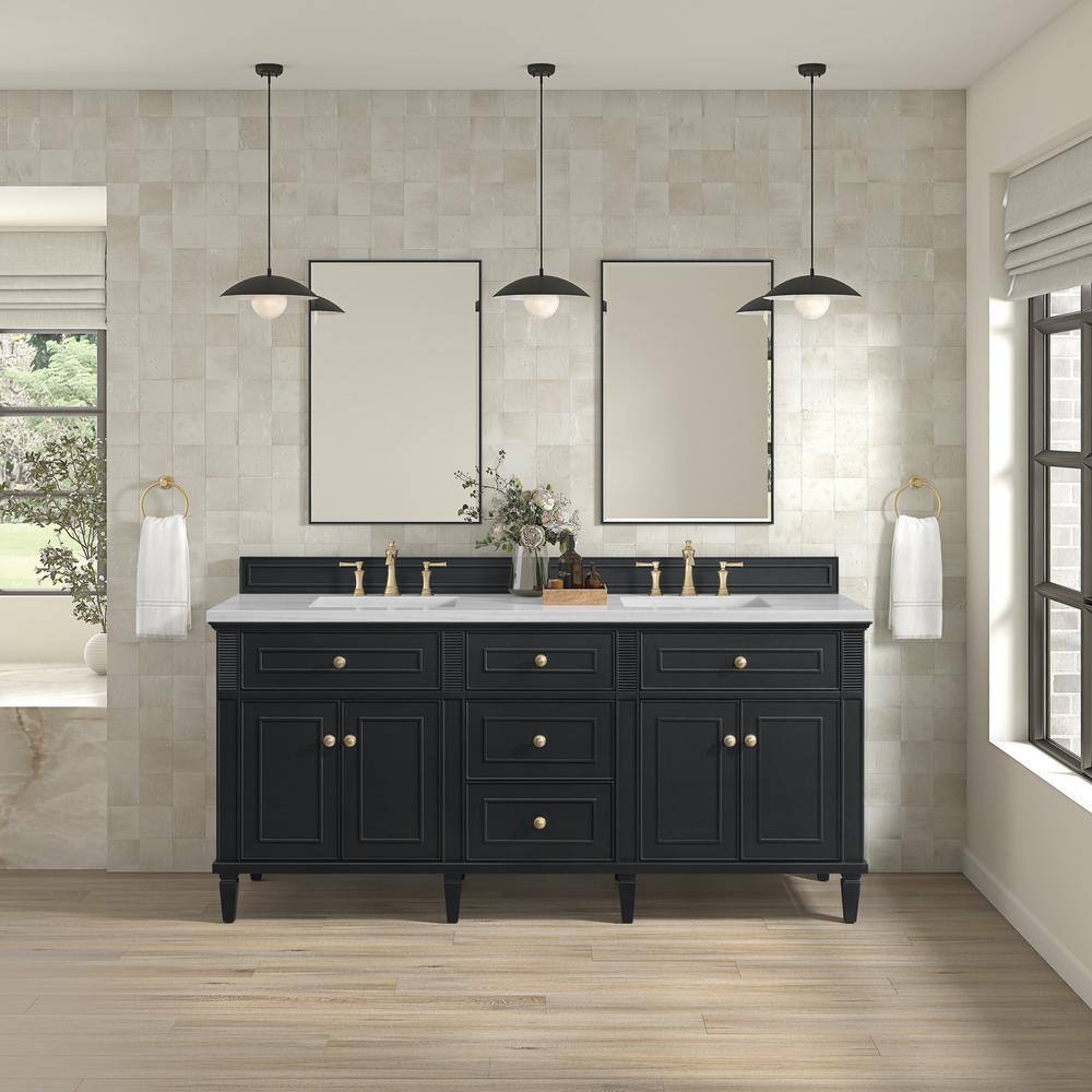 James Martin Vanities Lorelai 72" Double Bath Vanity in Black Onyx with Arctic Fall Top
