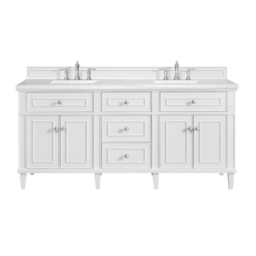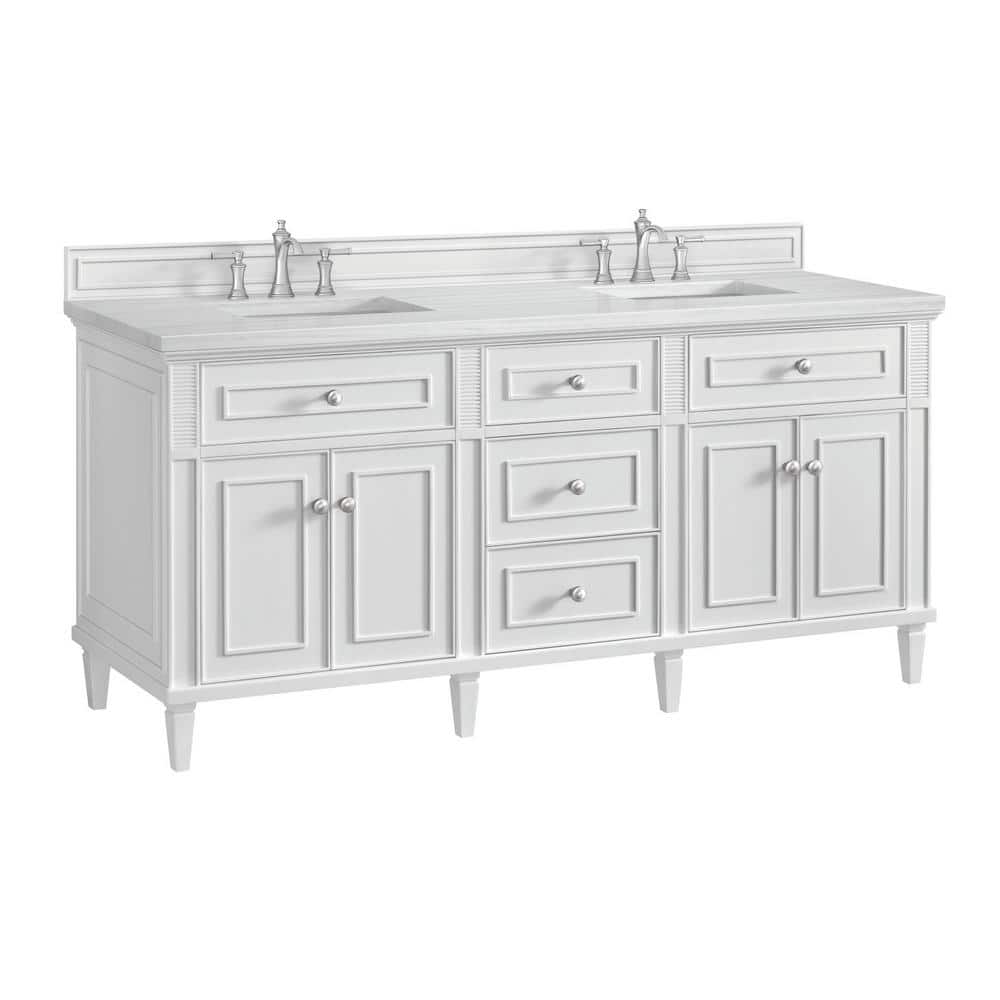 James Martin Vanities Lorelai 72" Double Bathroom Vanity in Bright White with Arctic Fall Top