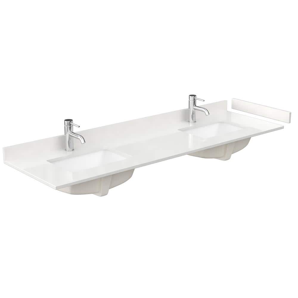 Wyndham Collection 72 in. Quartz Double Sink Bathroom Vanity Top with White Rectangular Sinks