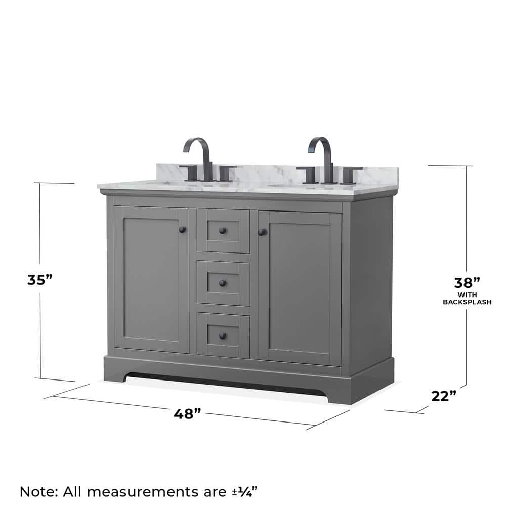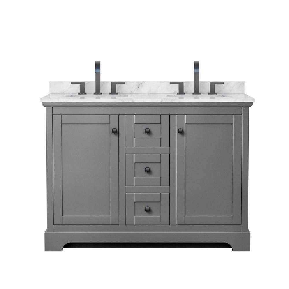Wyndham Collection Avery 48" Double Bath Vanity in Dark Gray with White Carrara Marble Top