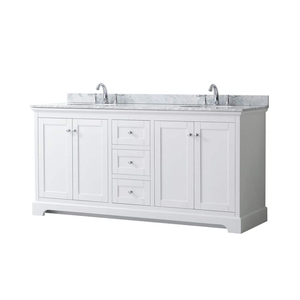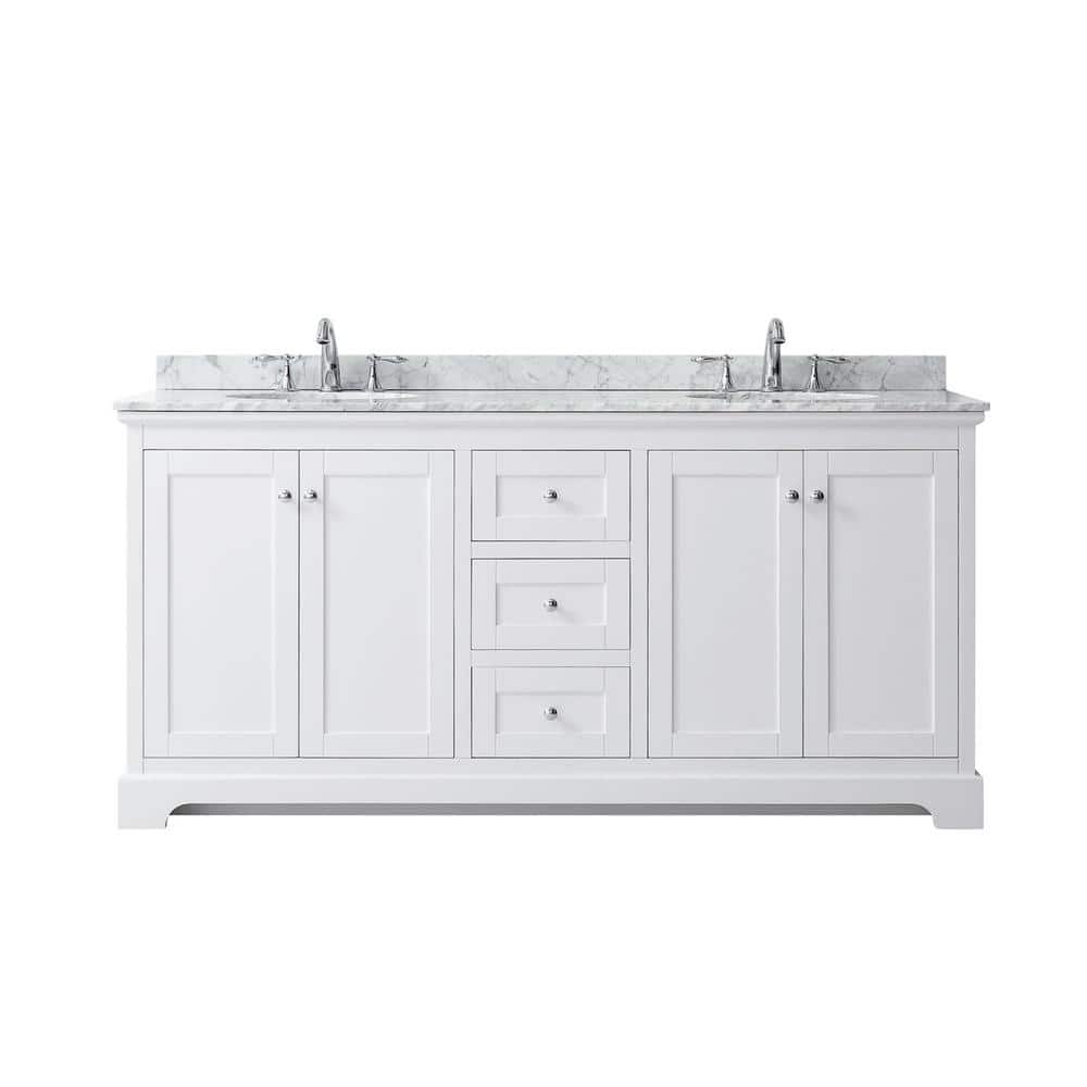 Wyndham Collection Avery 72" White Bathroom Vanity with Marble Top and Double Sinks