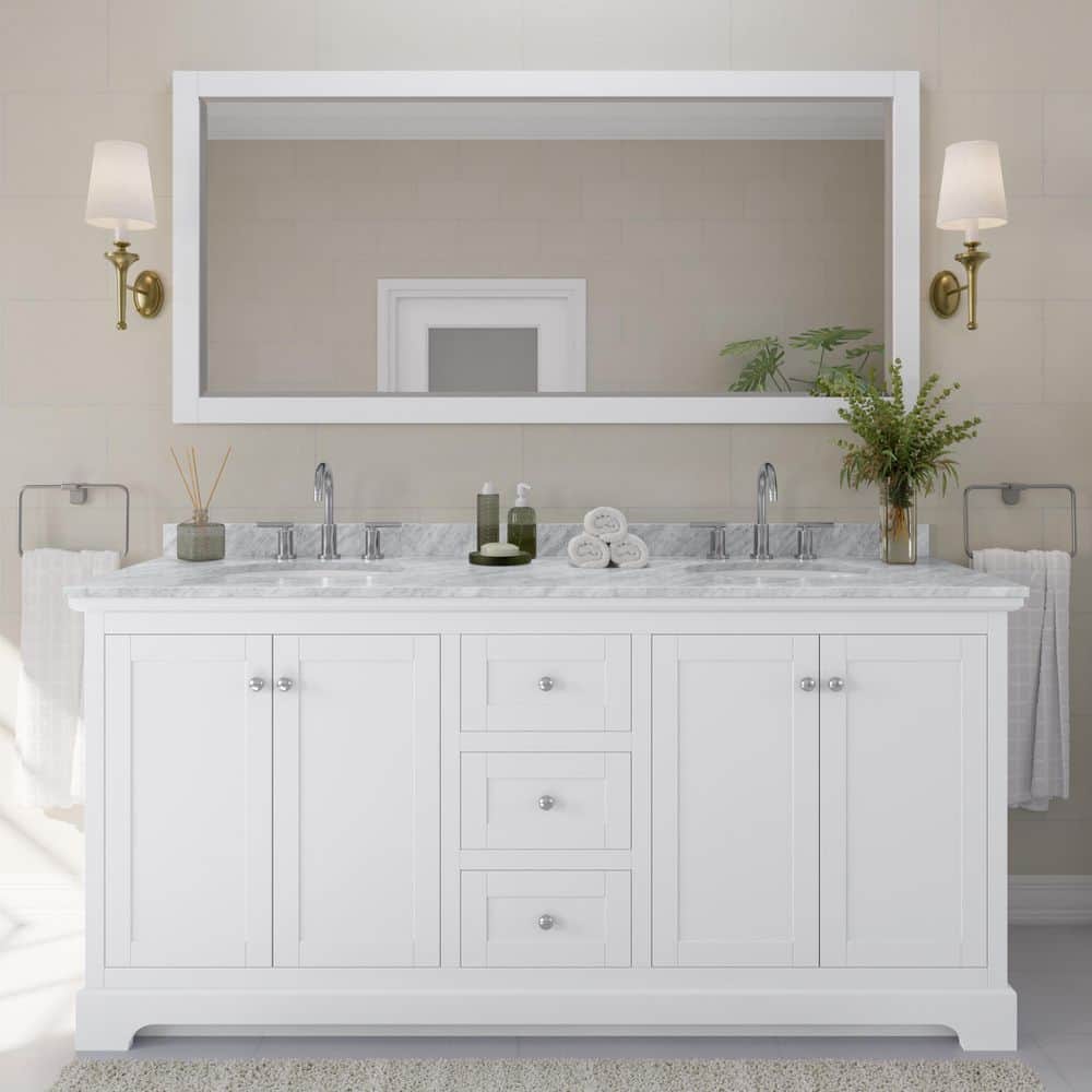 Customers praise the Avery 72" Vanity for its elegant design and high-quality materials. Many highlight the ample storage space and the luxurious feel of the White Carrara marble top. Some users noted that assembly was required, but found the instructions clear and manageable. Overall, it is highly recommended for those seeking a blend of style and practicality.