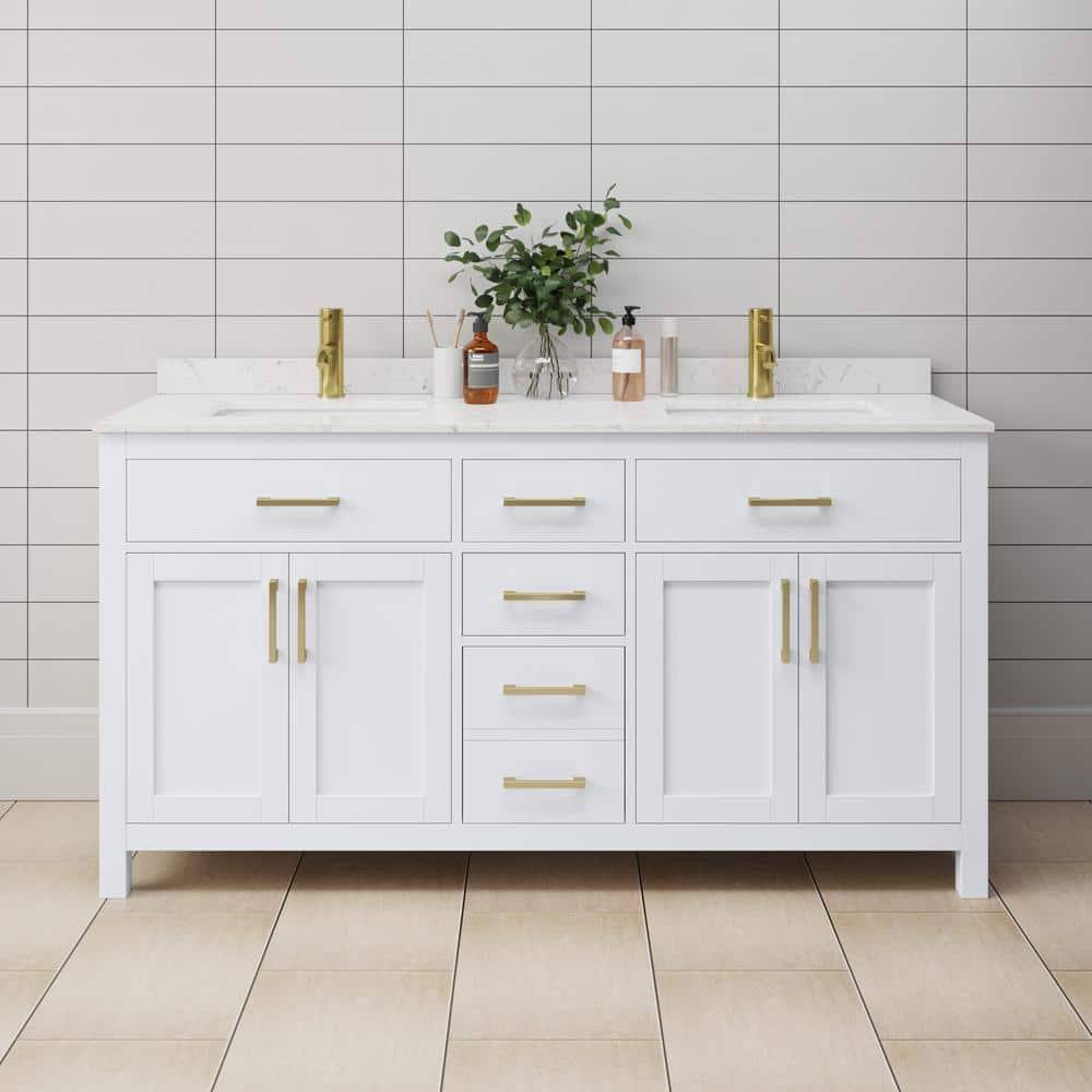 The Beckett 66" Double Bath Vanity combines classic design with modern functionality. Featuring a cultured marble top, soft-close doors and drawers, and ample storage space, this vanity is perfect for enhancing any bathroom.