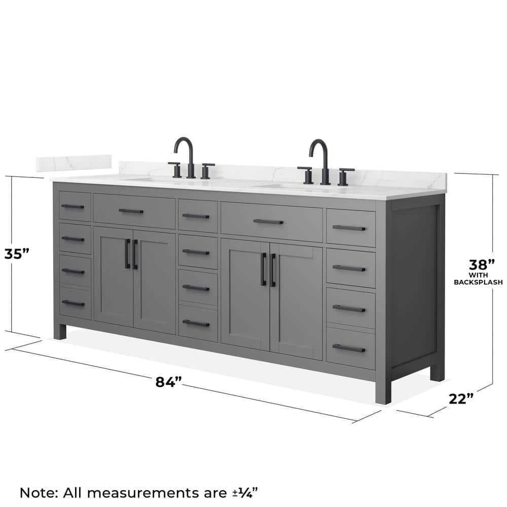 The Beckett vanity is a masterpiece of transitional design, blending modern functionality with classic aesthetics. Its Giotto Quartz top and dark gray finish exude sophistication, while the ample storage and soft-close features ensure practicality. Pair it with sleek black fixtures to create a cohesive and luxurious bathroom space. This vanity is not just a fixture; it's a statement of refined taste.