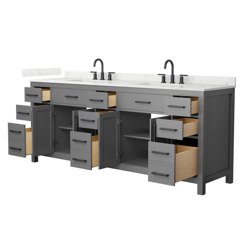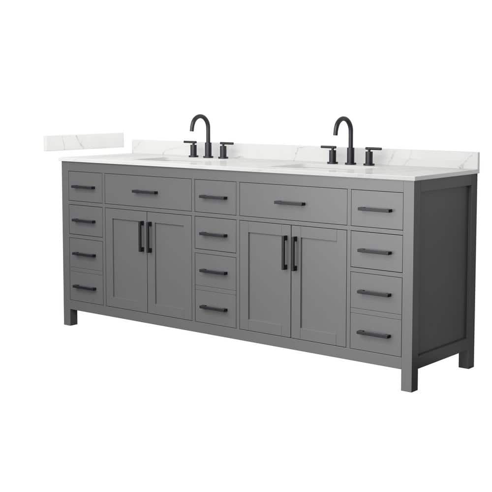 Wyndham Collection Beckett 84 in. Double Freestanding Dark Gray Bath Vanity with Giotto Quartz Top