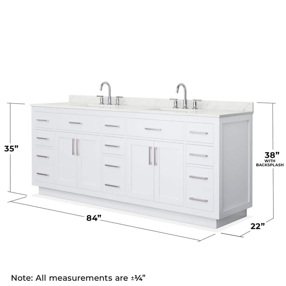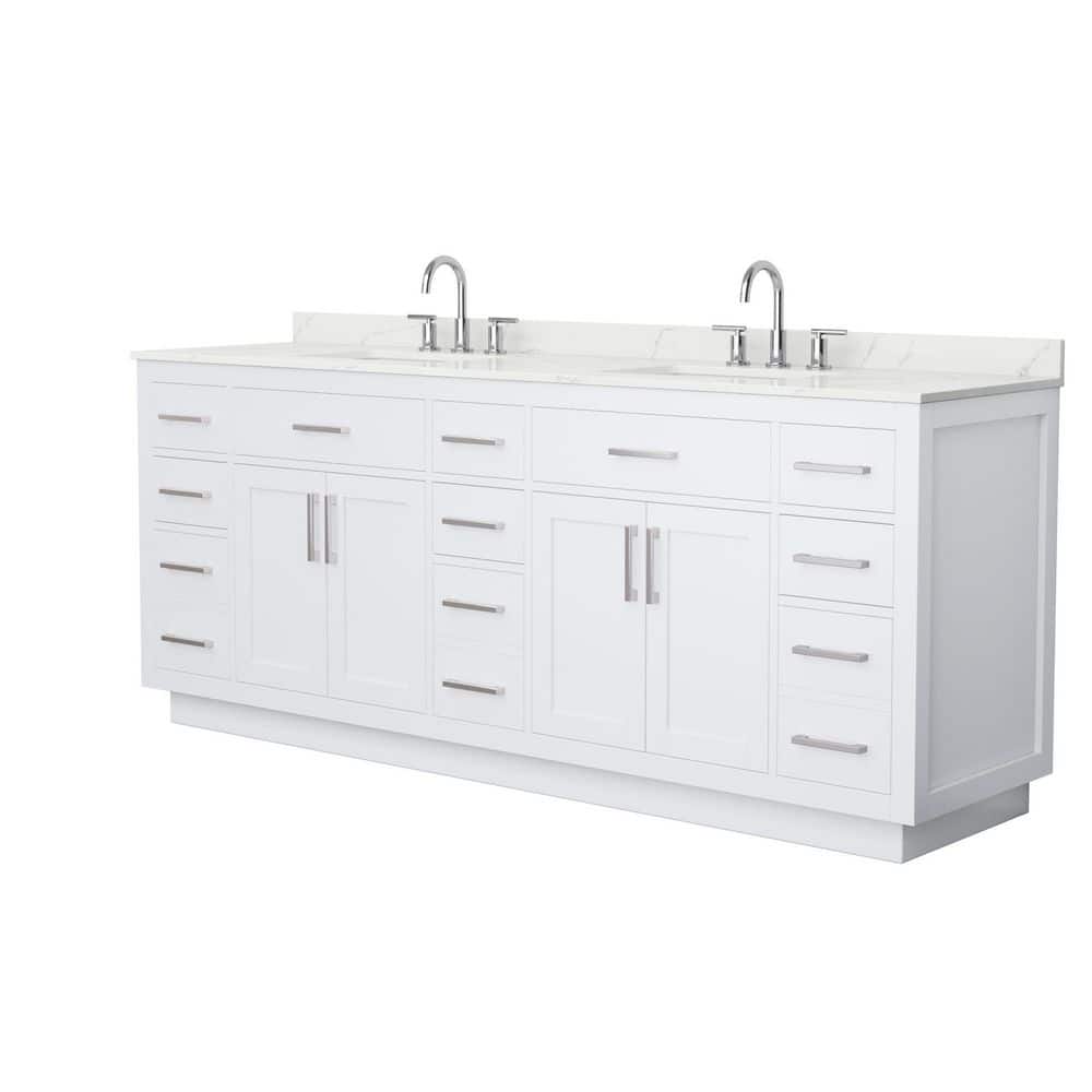 The Wyndham Collection Beckett TK 84" Double Sink Bath Vanity combines timeless design with modern functionality. Featuring a Giotto Quartz top, brushed nickel trim, and ample storage, this vanity is perfect for enhancing any bathroom space.