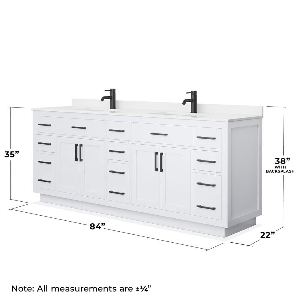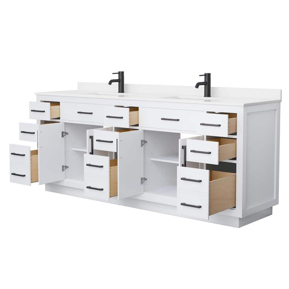 Wyndham Collection Beckett TK 84" Double Sink Bathroom Vanity with White Quartz Top