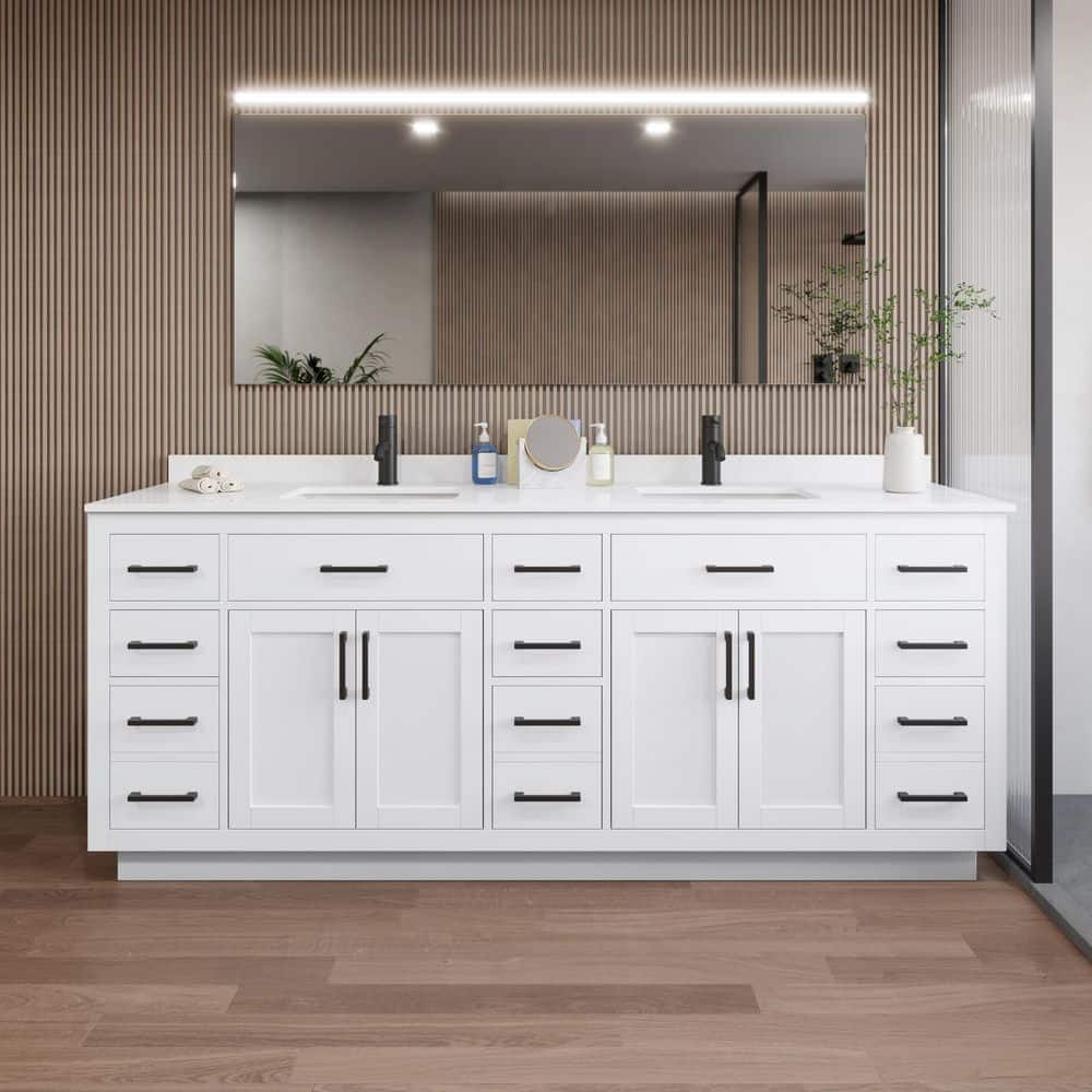 Beckett TK 84" Double Sink Vanity with White Quartz Top
