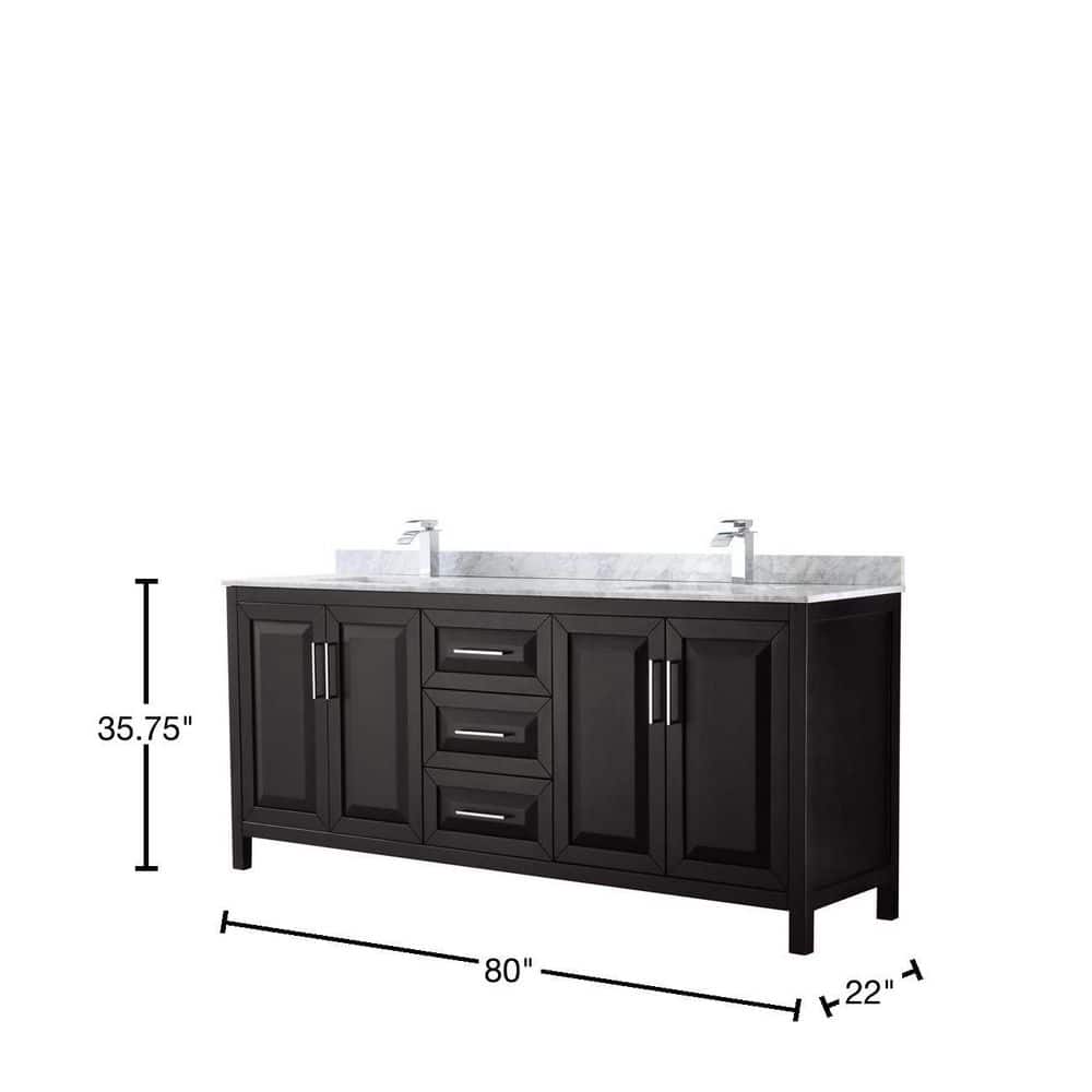 The Wyndham Collection Daria 80 in. Double Bathroom Vanity combines timeless design with modern functionality. Featuring a dark espresso finish, Carrara marble top, and ample storage, this vanity is perfect for enhancing any bathroom space.
