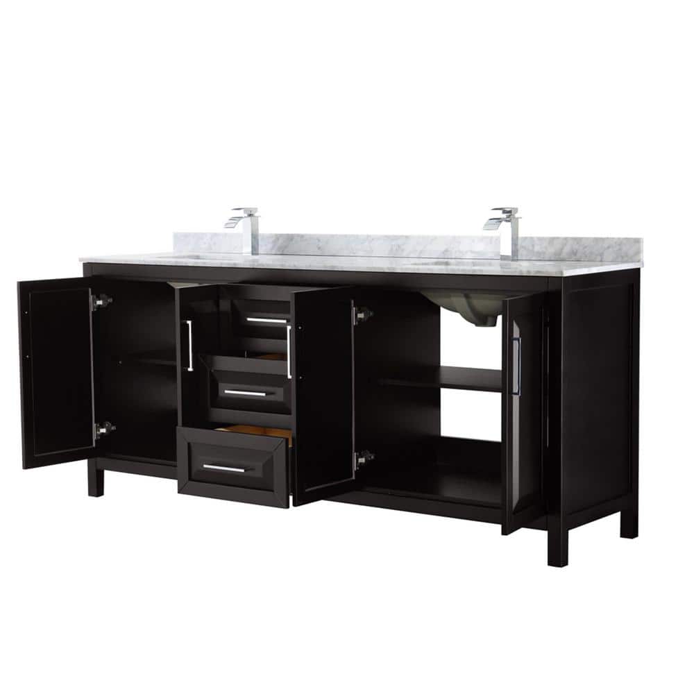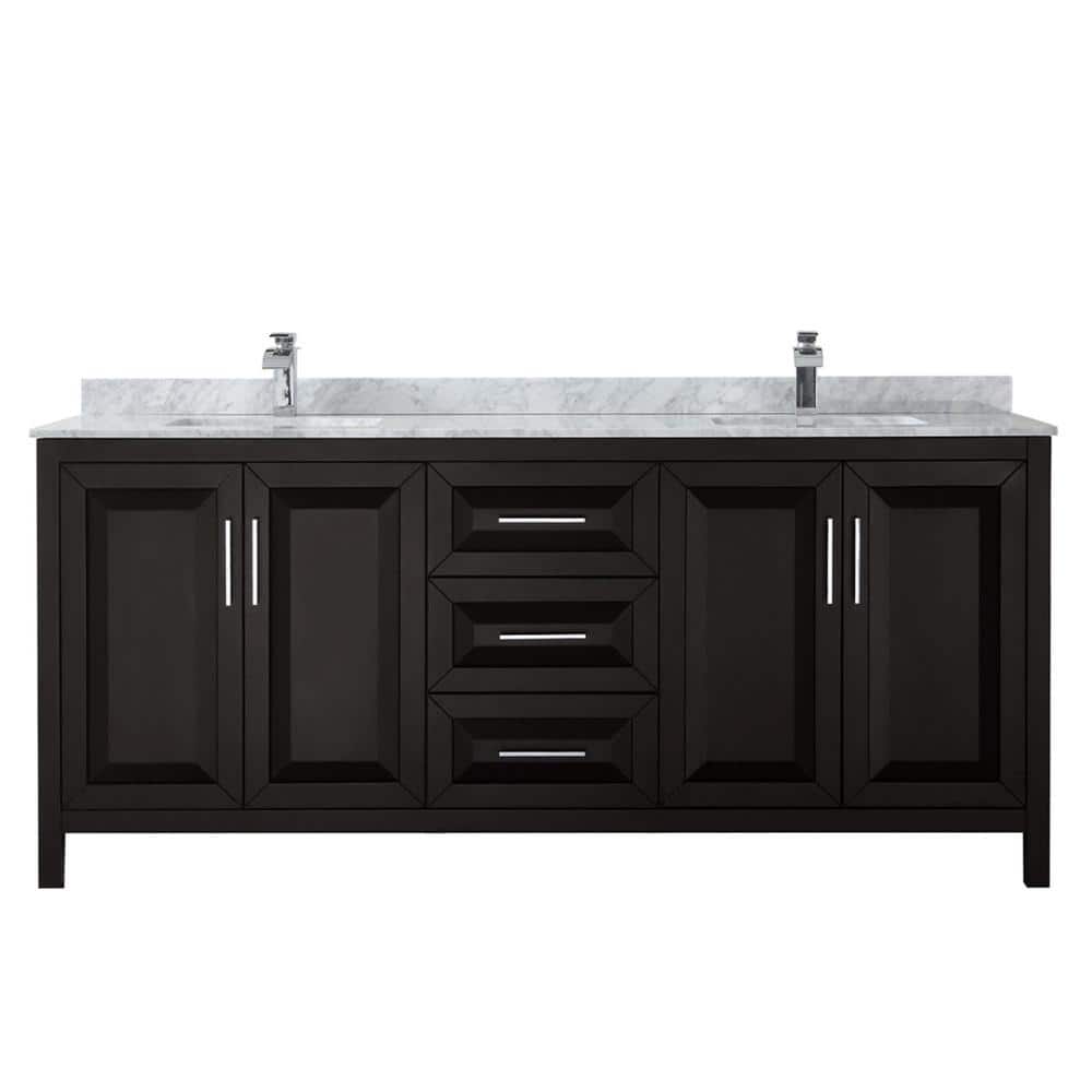 Wyndham Collection Daria 80 in. Double Bathroom Vanity, Dark Espresso with Carrara Marble Top