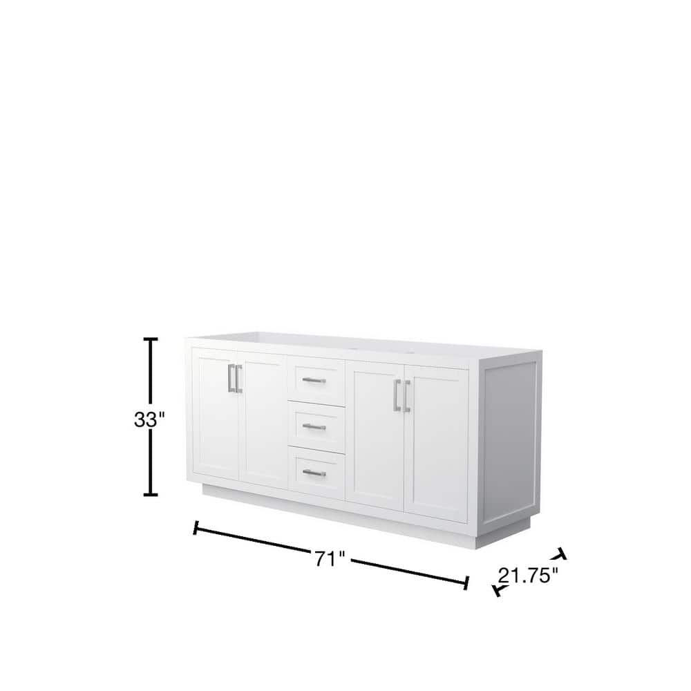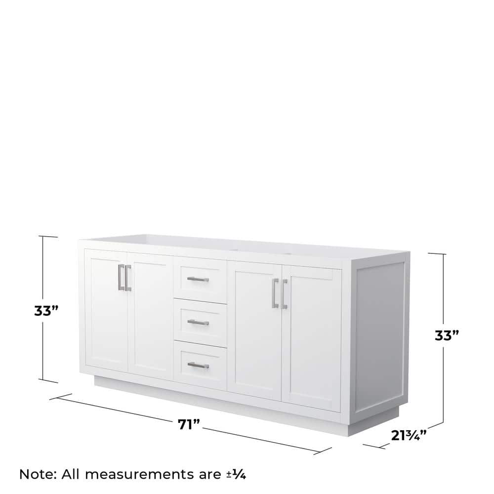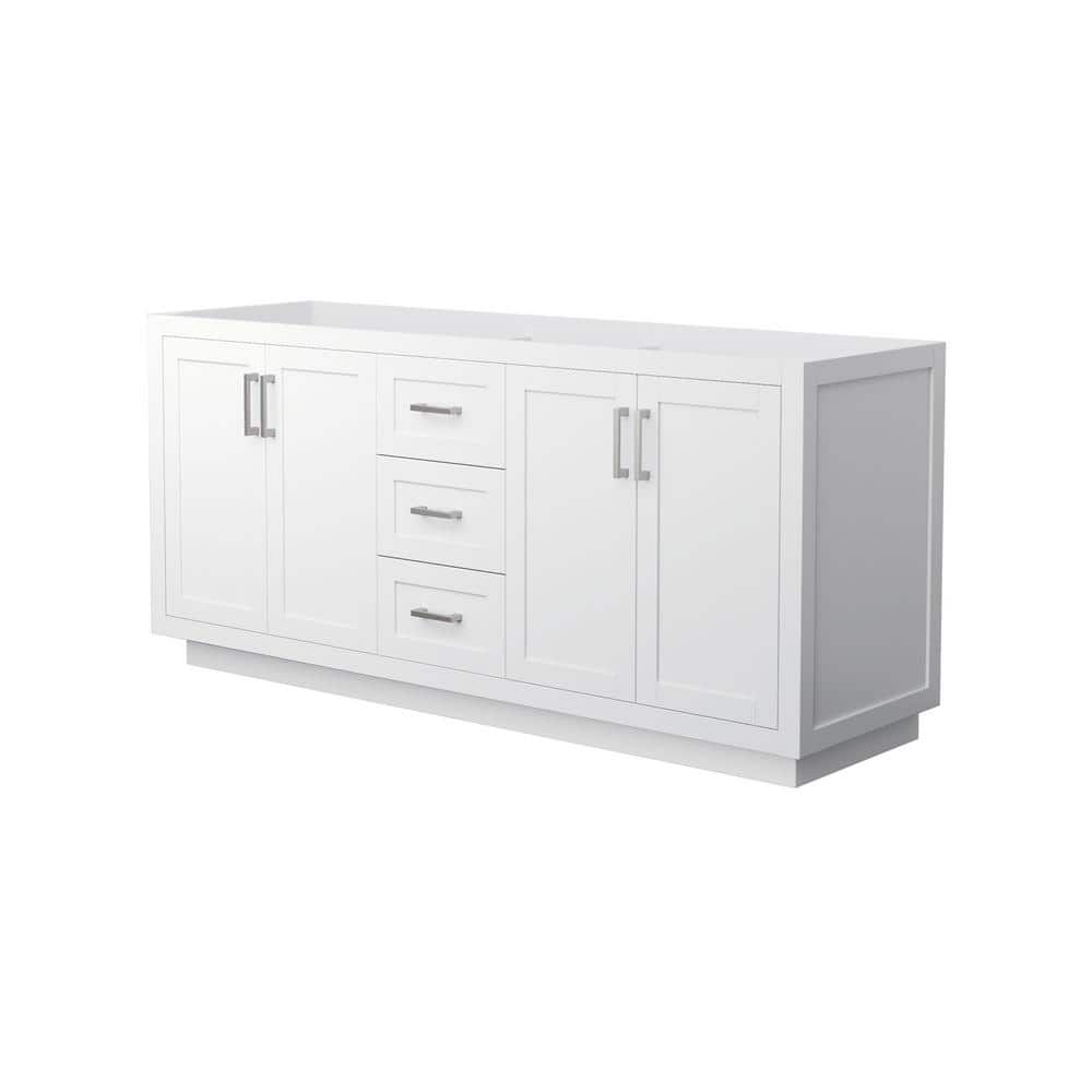 Wyndham Collection Miranda 71" Double Bath Vanity Cabinet in White with Brushed Nickel Trim, Freestanding Design, Soft-Close Doors and Drawers